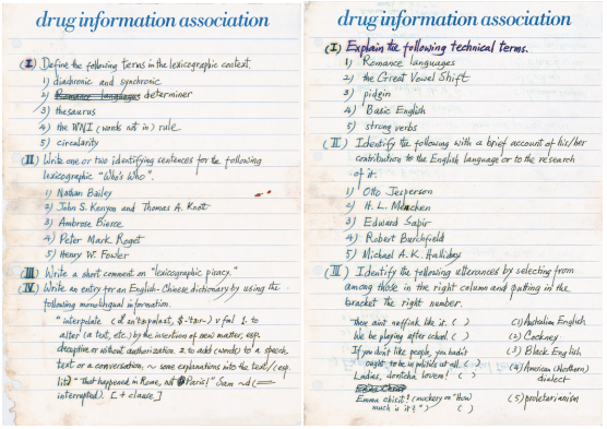 陆老师教书育人极其认真,不仅多年来坚持逐词逐行批改学生作业,也坚持亲自出题并手写试卷,考题均经过精心设计,题型涉及论述、例证、定义、词典学“实操”(要求学生实际尝试根据已有信息编纂具体词条)、小论文等,考察学生是否将学到的知识“内化”并灵活运用于词典学语境中,单项选择之类的“客观题”占比极小,绝非死记硬背或临时突击准备能够应对。