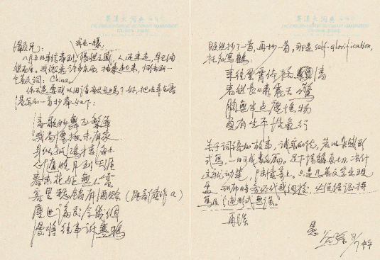 1991年左右,陆先生在给友人、前《文汇报》副总编陆灏的手写信中提到:“我依恋许多东西,抽象起来,归结到一个英文词:China”,并附两首近年所写的抒发心志的旧体诗: