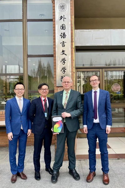 在会面中,我院德文系系主任李双志教授详细展示了德文系的历史、现状、与德国高校与科研机构的主要合作项目以及未来发展方向。对此,总领事先生表示高度认可与赞赏。德文系副系主任沈冲、外教Daniel Simon也参加了会见。