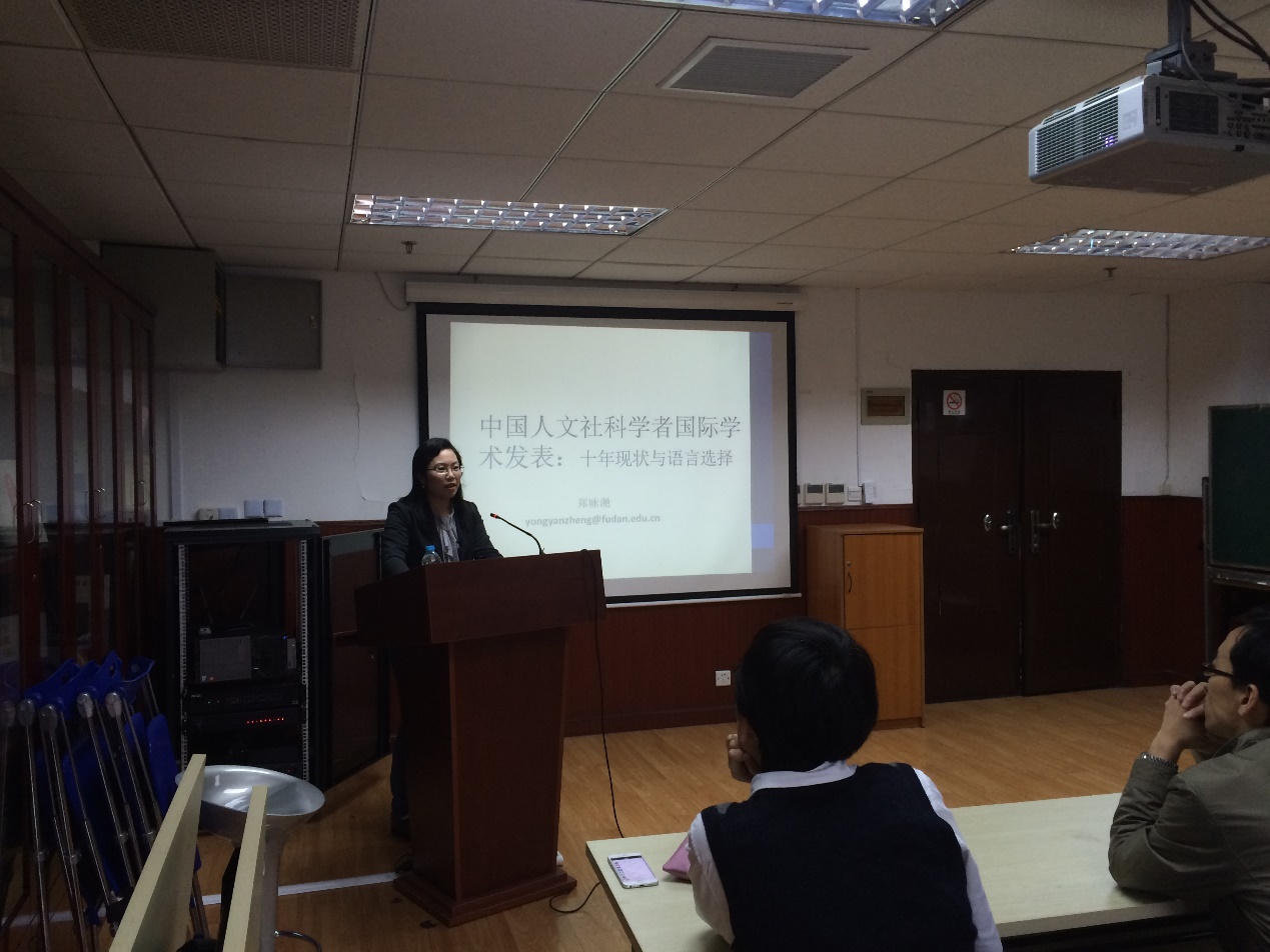 2016年5月10日,在文科楼424会议室举办了题为“中国人文社科学者国际学术发表:十年现状与语言选择”的讲座,主讲人外文学院英文系副教授郑咏滟老师为到场的30余位师生呈现了一场精彩的报告。