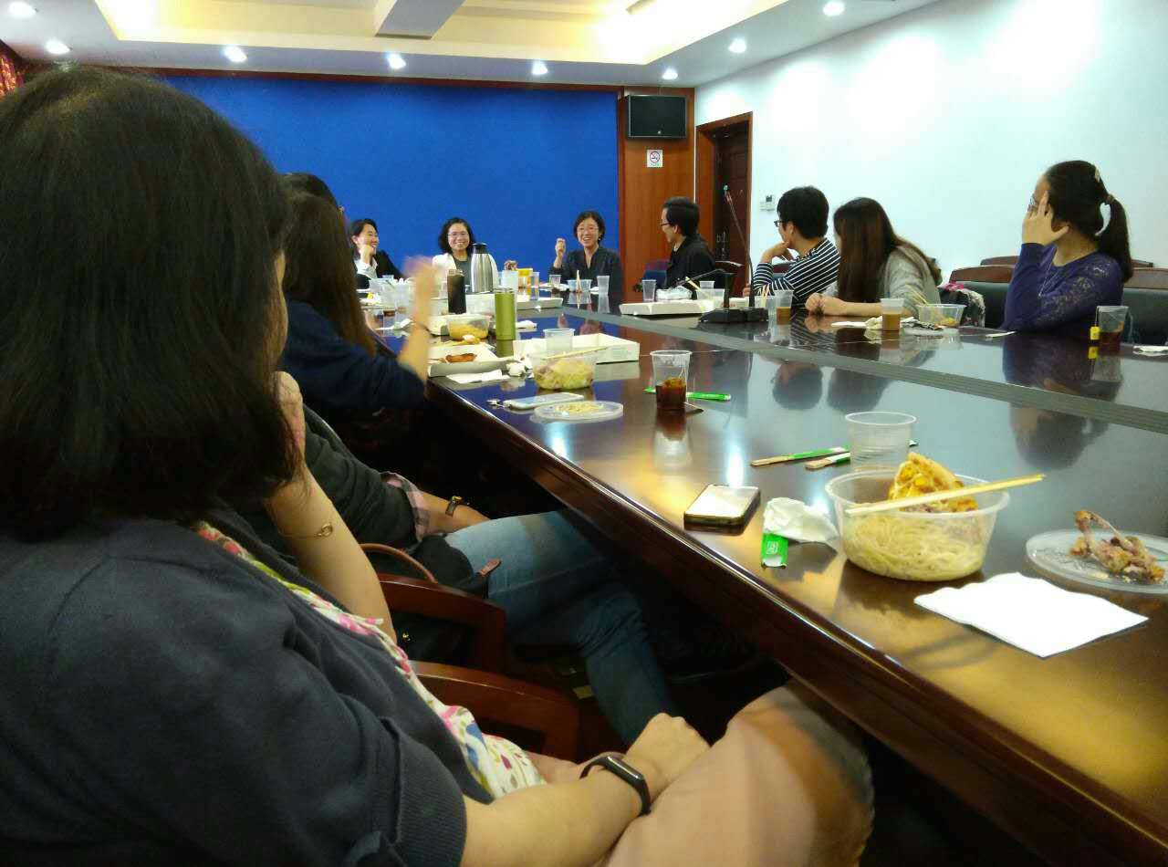 2016年10月26日中午,在文科楼220会议室,举办了外文学院博士生与青年教师午餐交流会。参与的学生为15级与16级的博士生,参与的老师除了辅导员李新梅老师及学工组王亚鹏老师之外,还包括英文系陈靓老师、翻译系陶友兰老师、日文系刘佳琦老师以及德文系姜林静老师。