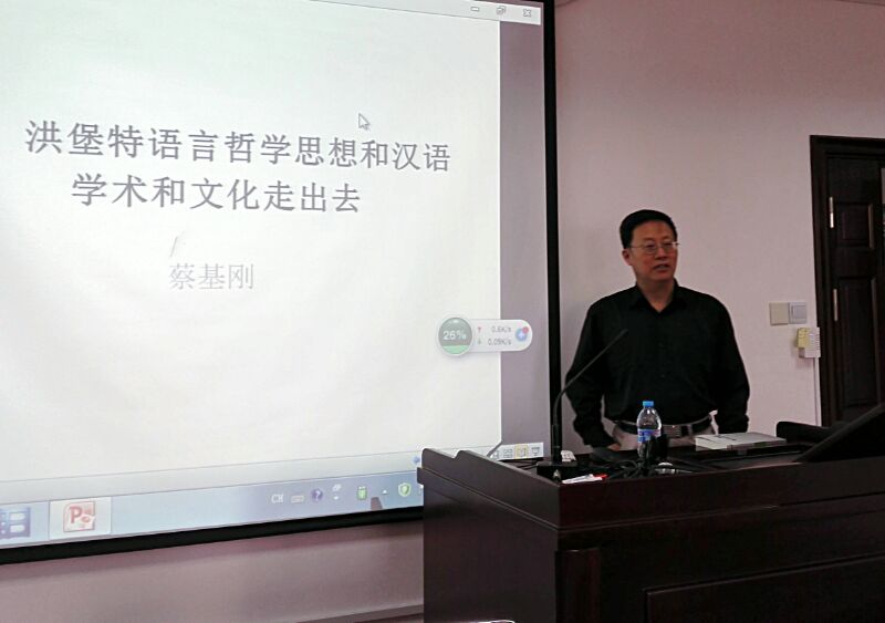 2016年10月25日下午,外文学院青联会主办了以“洪堡特语言哲学思想和汉语学术和文化走出去”为主题的读书讲座活动,主讲人为万象城网页版,万象城(中国)外文学院蔡基刚教授。