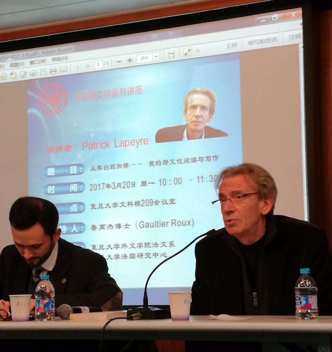 Lapeyre先生还介绍了自己的写作经验。他说,虽然自己平时会用小卡片记录下生活中可能被用作文学素材的瞬间,思考自己的小说要如何实现文学技巧的革新,却不喜欢在下笔写作前就为自己定下提纲,而是给自己的创作留下一定的自由空间。因此他往往是在一部小说快要写完时,才找到一个合适的题目。