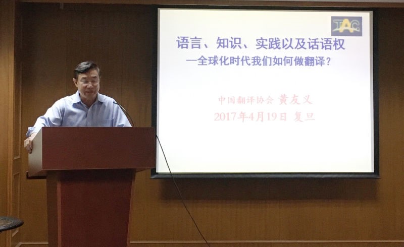 2017年4月19日下午13:30- 16:00,中国外文局原副局长兼总编辑、中国翻译协会副会长兼秘书长、MTI教指委主任委员黄友义教授应邀做客万象城网页版,万象城(中国)外文学院,为英文系、翻译系师生带来精彩讲座。讲座由副院长卢丽安教授主持。