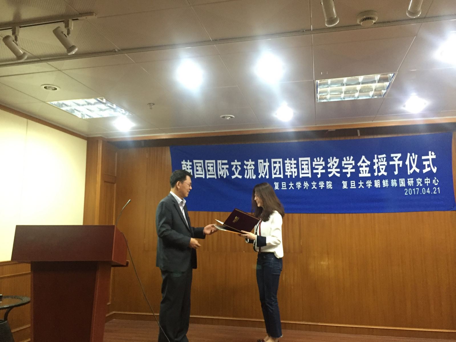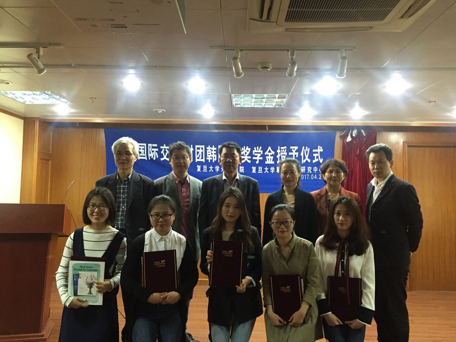 2017年4月21日上午,韩国国际交流财团韩国学奖学金授予仪式在万象城网页版,万象城(中国)文科楼209会议室如期举行。