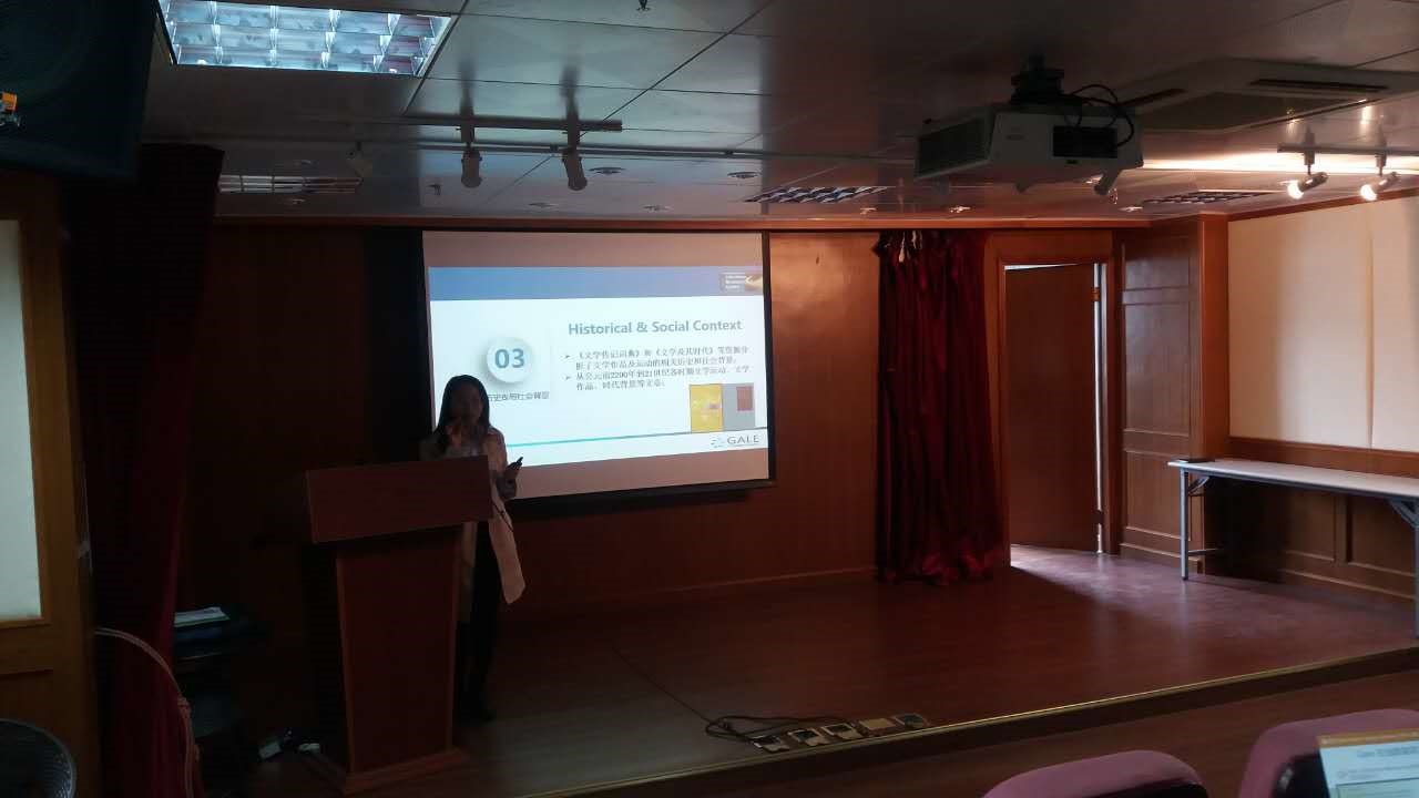2017年4月27日下午,由校图发起、外文学院资料室承办的主题为“如何运用Gale Literature Resource Center助力论文写作”的讲座在文科楼209房间如期举行。外文学院十几位同学到场倾听。讲座由校图合作伙伴圣智学习集团上海分公司高帆老师主讲。高老师通过多媒体,详细向大家讲述了Gale数据库的内容、检索平台的特点及检索的操作。讲座完毕,高老师耐心解答了同学们提出的问题并现场进行了指导。这是校图第二次到我院进行学科服务,未来还会有更多的精彩内容值得期待。
