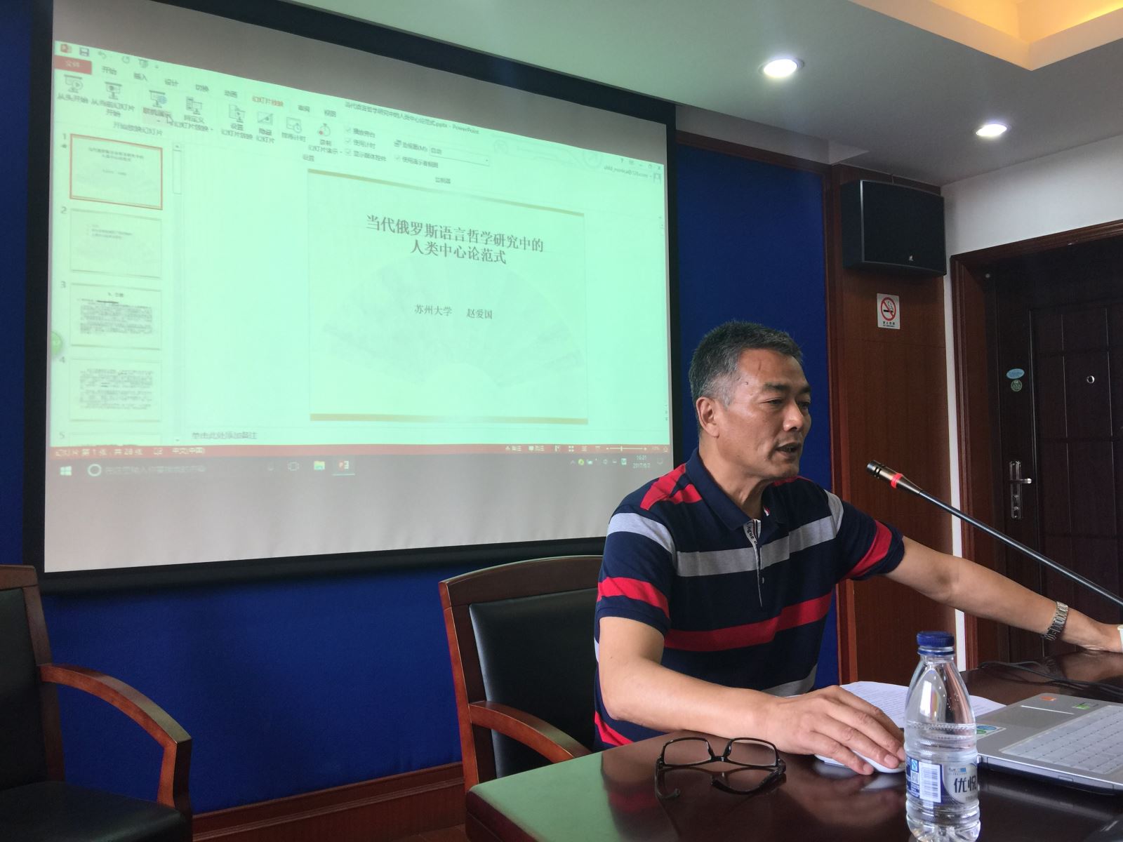赵爱国教授的报告主要包括引言、西方哲学实现的“四次转向”和人类中心论语言哲学三个部分。