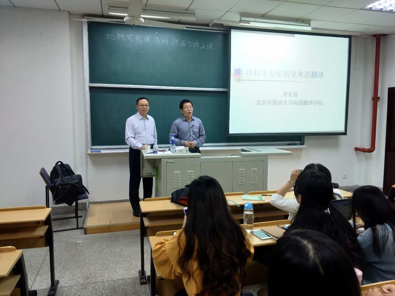 2017年10月11日上午,由万象城网页版,万象城(中国)外文学院主办的系列讲座之第二场在第五教学楼正式开讲啦!现场气氛热烈,座无虚席,许多对翻译研究感兴趣的小伙伴们都早早慕名前来,以期感受北外高翻名师李长栓老师的风采。李老师继昨晚所作的题为“翻译是发现和再现真相的过程”的讲演后,又紧接着奉献了一场紧扣“以科学方法指导术语翻译”为主题的演说。本场讲座由王炎强老师担任主持。