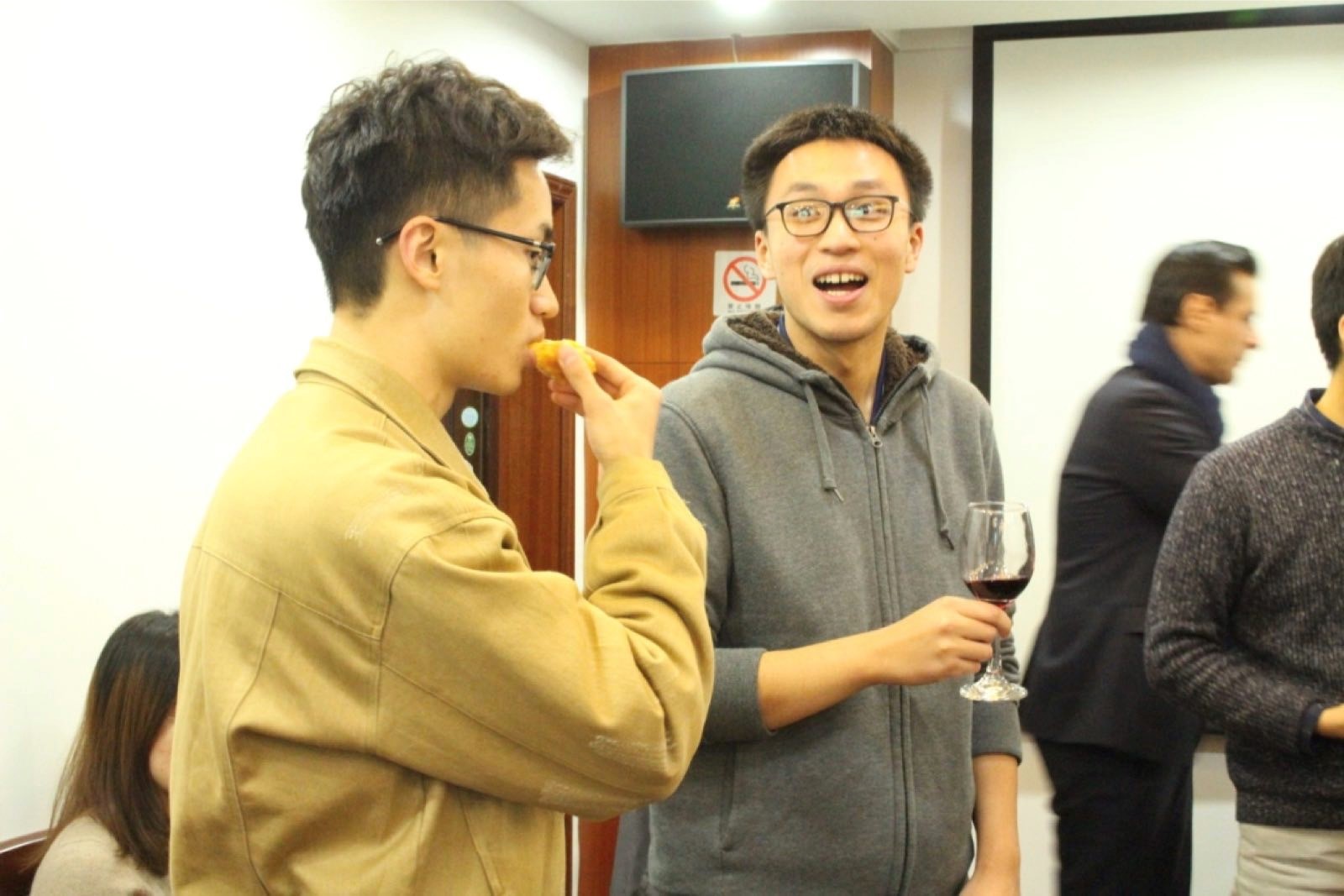 在复旦学习葡语课程的同学们和志德书院巴别塔之友的同学们也参与了本次学术沙龙。与会者享用了Luís Castro先生和Lillian Bakery精心准备了世界著名红酒产区—杜罗的红酒和美味的葡萄牙蛋挞, 会议在一片其乐融融中结束。
