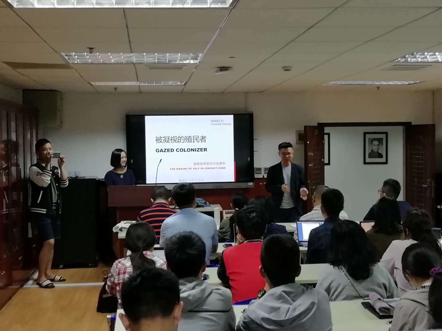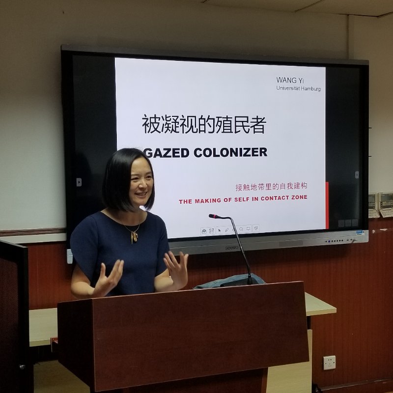 讲座从“凝视”(Gaze)一词出发,通过萨特、拉康和福柯三者对“凝视”的不同解读,说明了“凝视”概念处于自我、他者、想象和权利之间的特殊位置,并进一步引申到“殖民凝视”、“文化凝视”和“性别凝视”这三个相互交叠的范畴中。王怡博士首先聚焦于“殖民凝视”这一点,以弗朗兹·法农和Ann Laura Stoler的作品为例,说明了“殖民凝视”一词的涵义,再通过Maria Louise Pratt的《帝国之眼:旅行写作与文化汇流》(Imperial Eyes.Travel Writing and Transculturation)引入了“接触地带”(Contact Zone)的概念。而对于是否存在中立的殖民者这一饱受争议的问题,王怡博士也以Albert Memmi的理论为支撑给出了否定的答案。