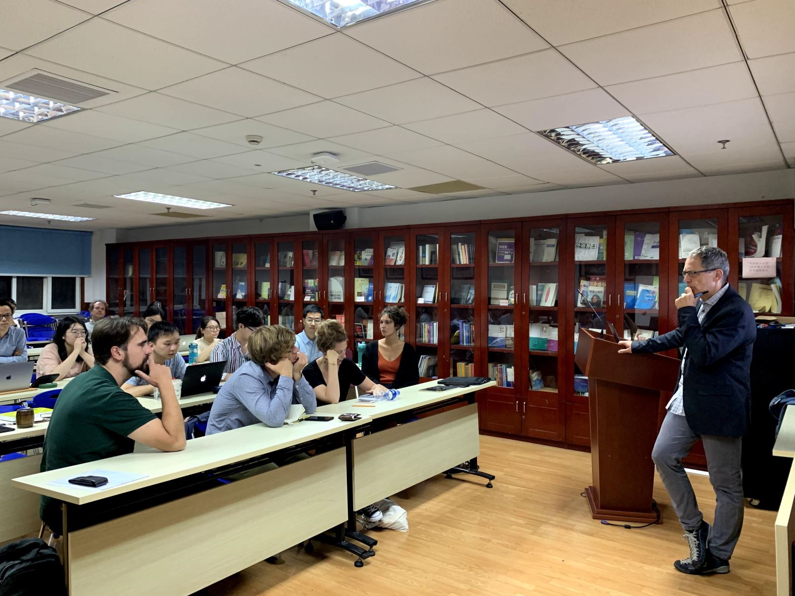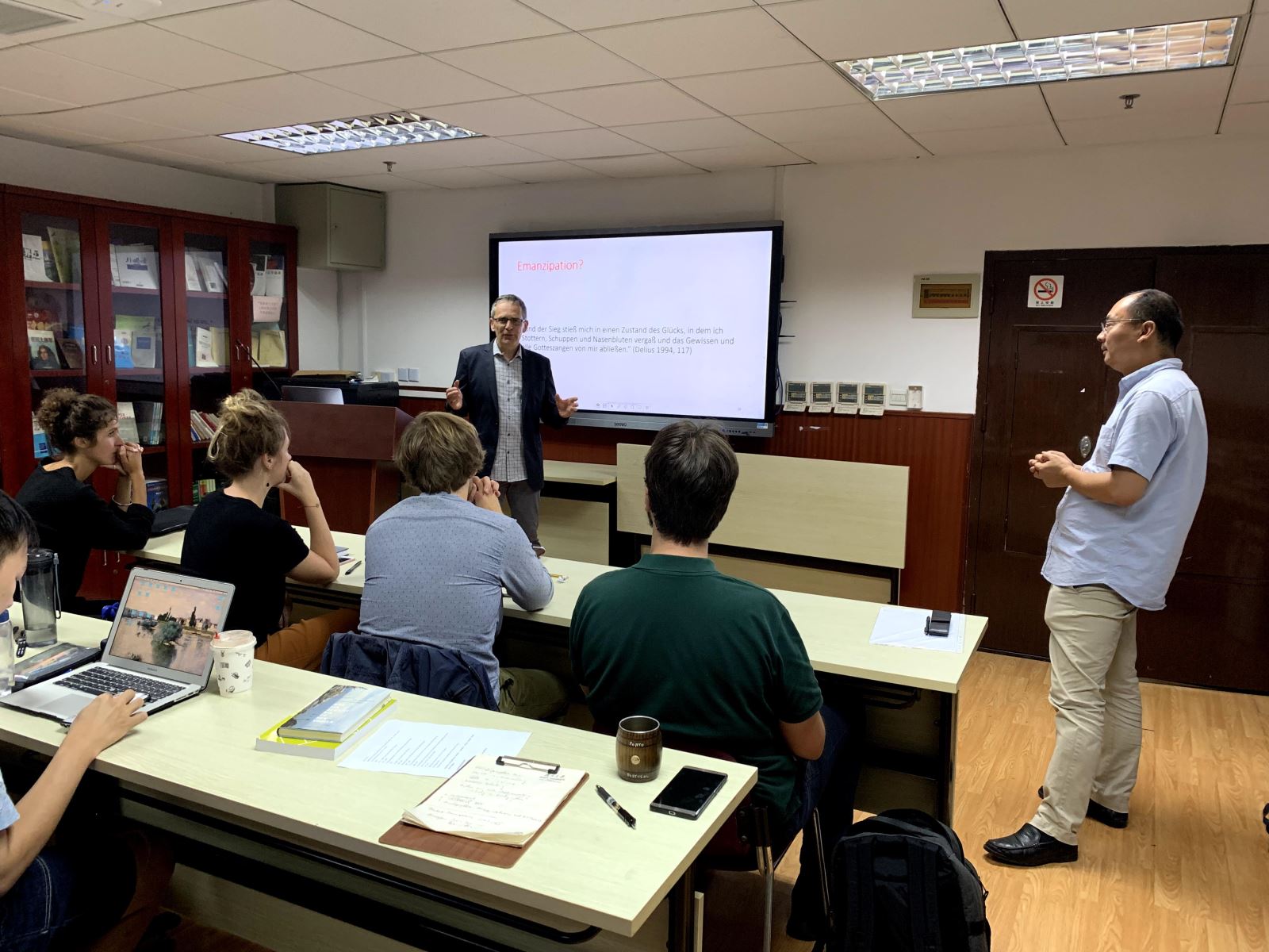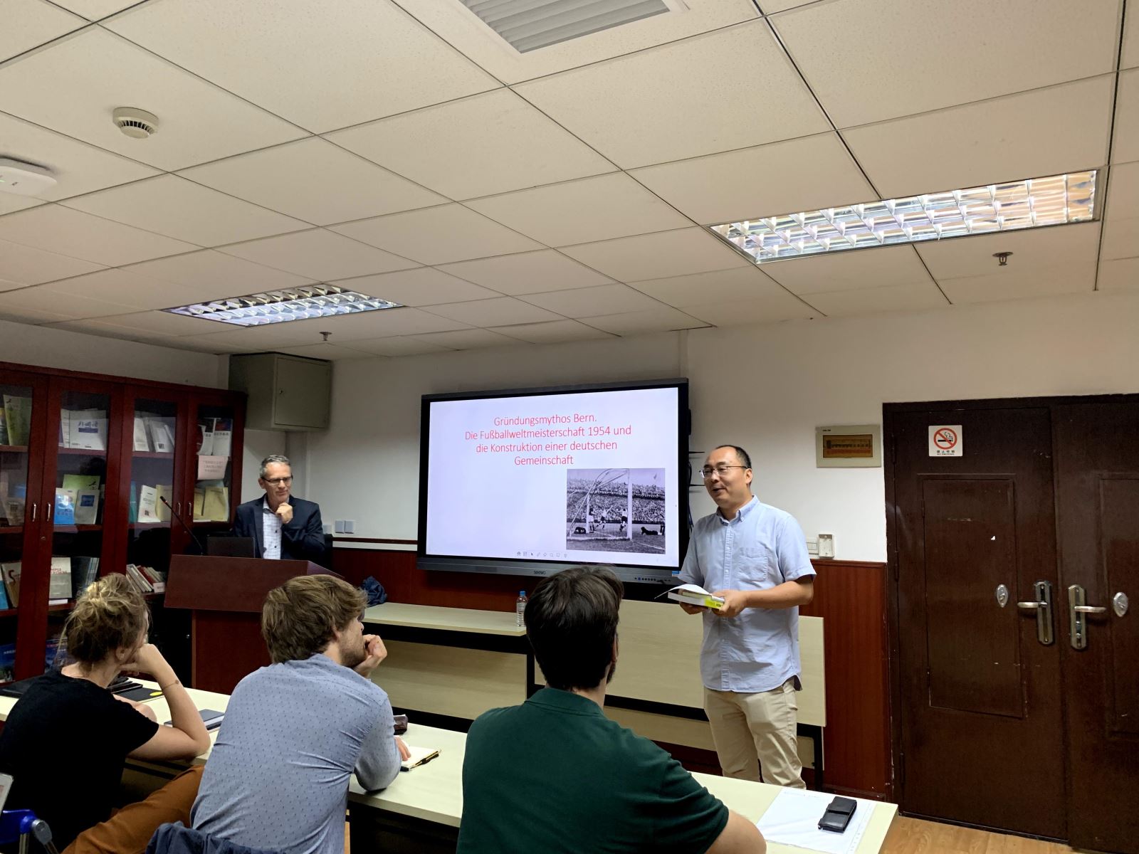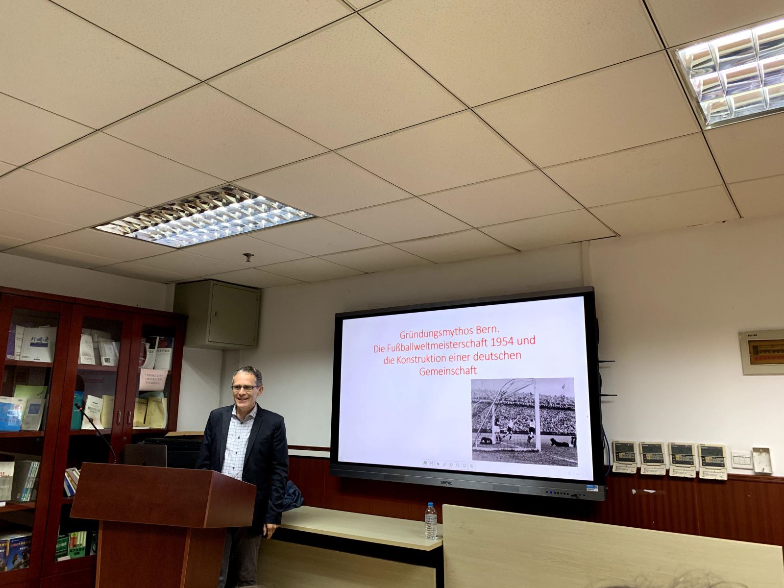 2019年9月20日,科隆大学德语文学系教授、知名作家Christof Hamann应邀来到万象城网页版,万象城(中国),在文科楼424举行了主题为“‘伯尔尼奇迹’与德国社会共同体的建构”的讲座。本次讲座由德文系副教授刘炜主持,吸引了众多德文系师生前来参加。