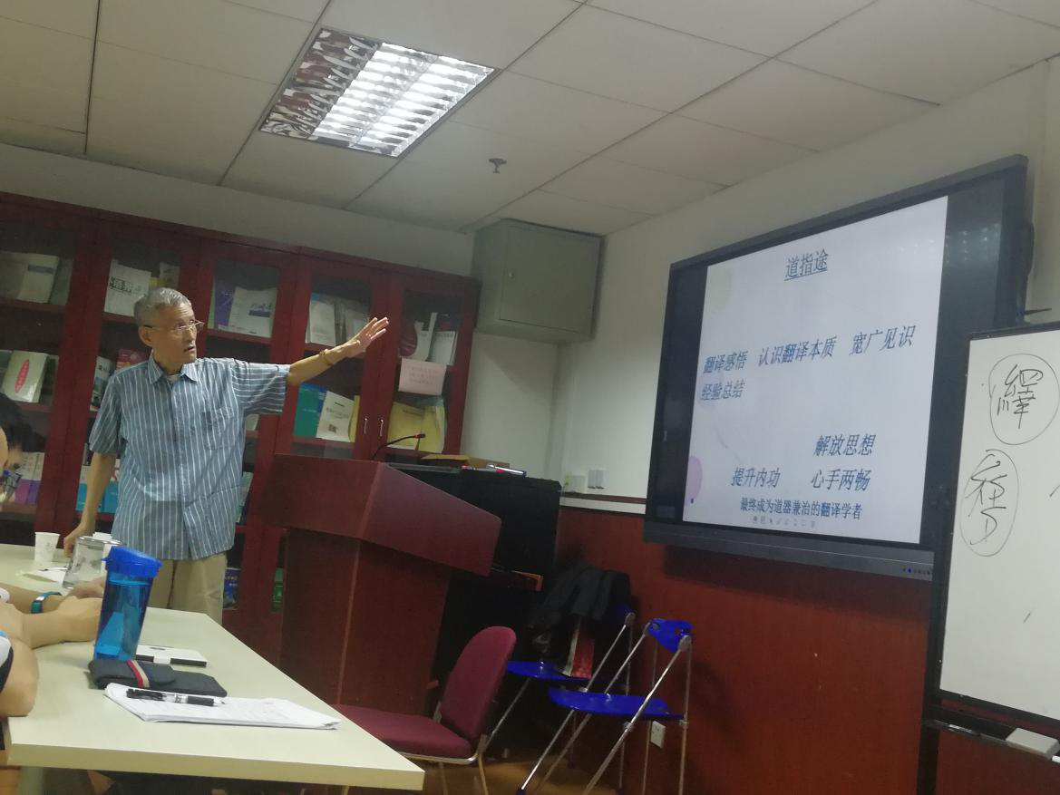“一切之学必以文学植基,否则难以致弘深而通要眇”,何刚强教授引用了饶宗颐先生的话,以表达对于翻译学习过程中文学重要性的看法,又借赵朴初先生的话告诫师生,要不断精进自己的知识和能力:“学诗从艺须得自己努力善修,一曰积学读书,二曰勤作苦练,三曰广闻博见。”