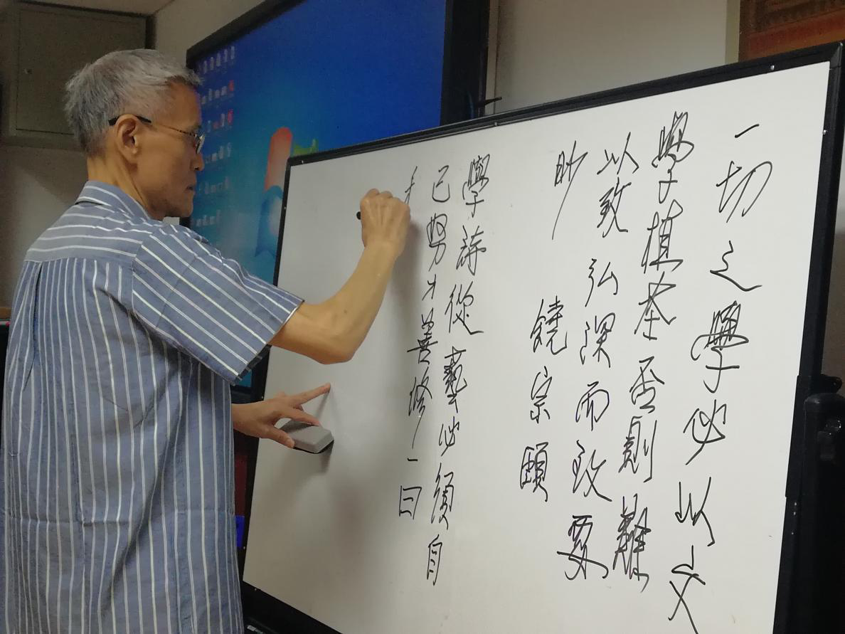 何教授在谈论翻译作为艺术时,顺便提及了中国书法中的草书,认为它属高度抽象的艺术,在一两笔画之内就能表意清晰,形象深刻,值得同学们学习研究。此外,加强当代大陆学者对于繁体字的学习和了解也具有重要意义,翻译系的学生尤其应当加强这方面的训练,不能让中国的文化基因、文字基因随字体的由繁变简而舍弃精华,只剩粗陋。