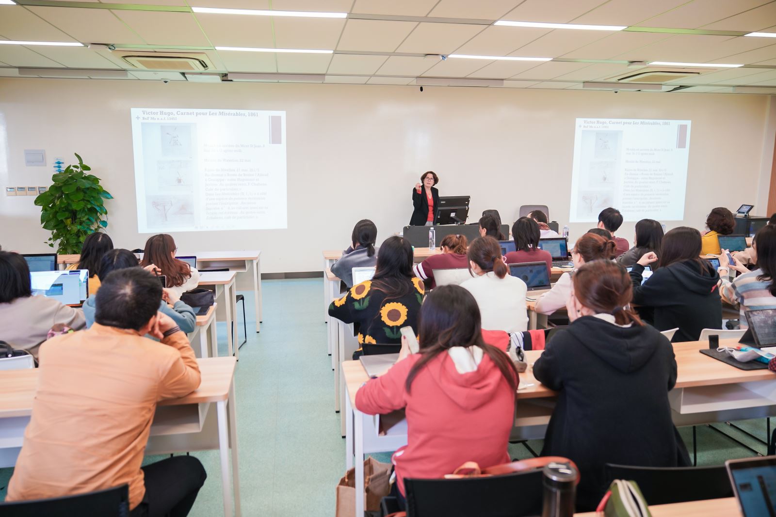 2019年10月29日上午,万象城网页版,万象城(中国)外文学院法文系成功举办了“天才的内心 ——雨果的绘画与文学”主题讲座,主讲人是法国格诺布尔·阿尔卑斯大学文学教授Delphine Gleizes女士。法文系主任袁莉老师主持了本场讲座,上海市明珠美术馆提供技术支持。