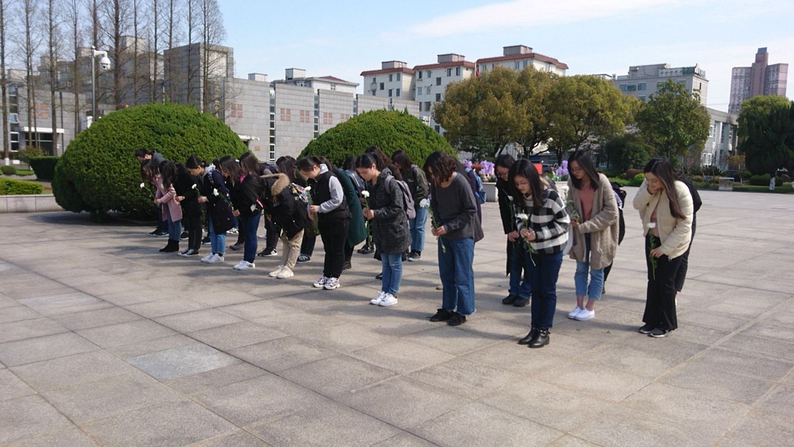 宝山是上海解放战役的主战场之一,人民解放军在这里前仆后继,浴血奋战,为上海解放做出了重大牺牲。在解放上海战役中牺牲的8000余名烈士中,有1886名长眠于宝山烈士陵园。在庄严、肃穆的气氛中,同学们怀着崇敬的心情向革命烈士敬献了鲜花,在革命烈士墓前鞠躬致哀,缅怀他们为解放上海人民立下的不朽功勋。党支部书记许永建、辅导员贾怡锐先后发言,并带领大家在烈士墓前庄严宣誓:“人民为先,祖国至上;诚实勇敢,自律自强;奋发有为,誓作栋梁;振兴中华,再创辉煌!”