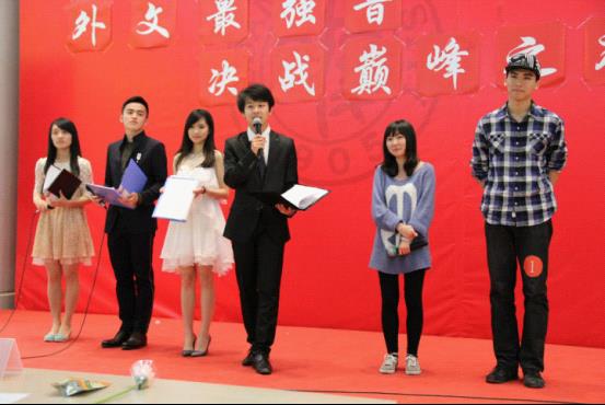 5月6日晚,由外文学院举办的“外文最强音”外文歌曲大赛决赛在光华楼十三楼多功能厅举行,张慧子夺冠。到场的评委老师分别为志德书院学工组长茅盾老师、10级历史本科生辅导员顾宁老师、10级新闻本科生辅导员谢振达老师。