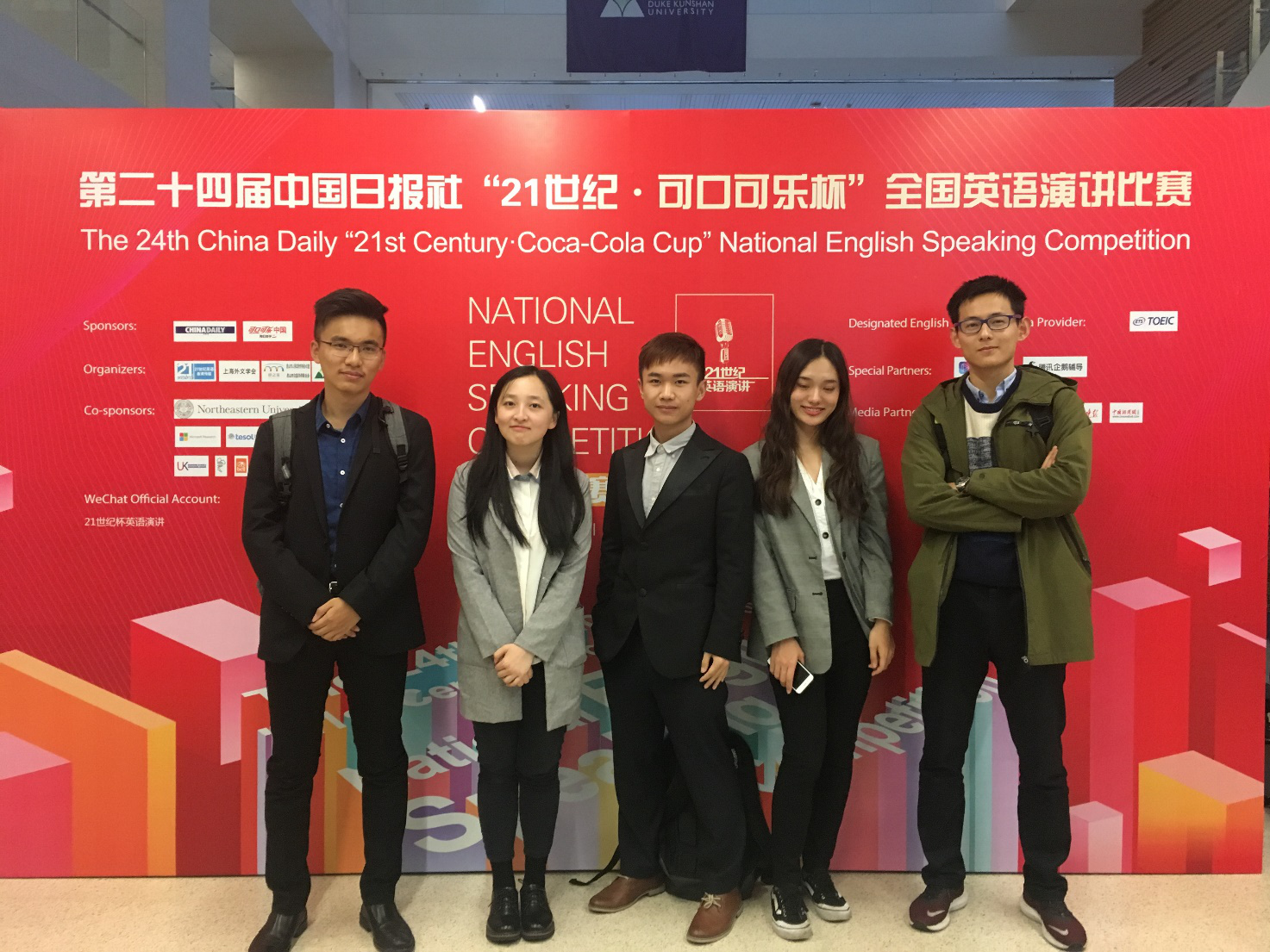 12月1日,第24届中国日报社“21世纪·可口可乐杯”全国英语演讲比赛上海赛区决赛在昆山杜克大学举行。在比赛中,复旦学子取得了优异成绩。来自外文学院的韦家宝获特等奖,来自法学院的罗雯、来自外文学院的张昊翔、林曾汇获一等奖,来自国务学院的杨纪源获二等奖。