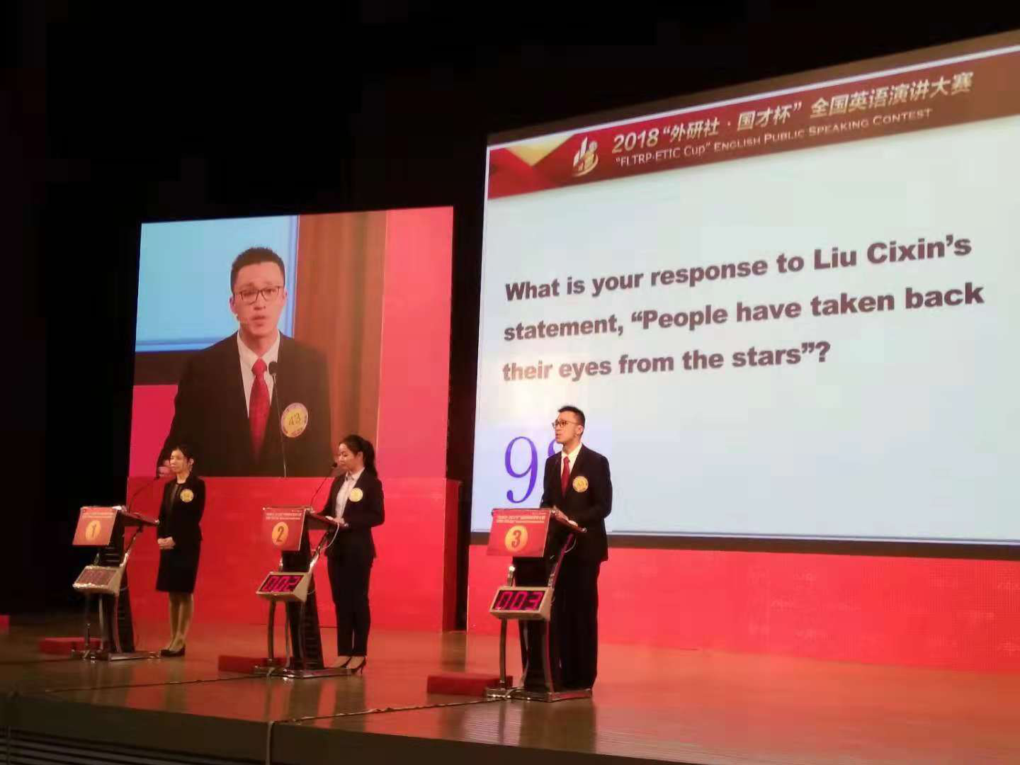 12月9日上午,2018Uchallenge大学生英语挑战赛“外研社·国才杯”全国英语演讲大赛迎来“收官之战”,这也标志着2018Uchallenge大学生英语挑战赛正式落下帷幕。复旦学子在此次大赛中荣获多项殊荣,来自外文学院英文系的 熊志远 同学(指导教师 万江波)获全国季军,来自历史系的 孙晴依 同学(指导教师 单理扬)、英文系的 刘悦桐 同学(指导教师 时丽娜)获一等奖。此外,由 时丽娜、单理扬、张帮印 老师指导的 黄子欣、陈冬儿、王馨平、邱嘉予、项昊天 等五位同学获三等奖。在英语演讲与辩论中心的指导下,复旦学子今年再次以优异的团队表现成为本届大赛的亮点,我校共有8名选手跻身全国总决赛,3名选手跻身全国24强,在全国高校中遥遥领先。本届“外研社·国才杯”全国英语演讲大赛通过全国范围内的地面校选赛、地区赛及网络赛等各种形式参赛的中外选手总人数过万人,我校选手能在竞争如此之激烈的赛事中脱颖而出实属不易。此外,去年全国总决赛冠军、英文系 傅之君 同学此次受邀,担任了本届总决赛第一第二轮主持人并出色地完成了主持工作。
