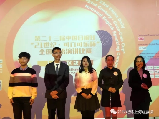 2017年12月10日,第23届中国日报社“21世纪•可口可乐杯”全国英语演讲比赛上海赛区决赛于中国日报社21世纪杯全国英语演讲学术交流中心成功举行。我校派出的四位选手在所有选手中整体表现优秀,成绩突出,新闻学院一年级张知晓、英语类一年级骆晓琪及傅之君获一等奖,金融学专业二年级王国鉴获二等奖。他们的指导老师万江波、张帮印、Patrick Thame获优秀指导奖。