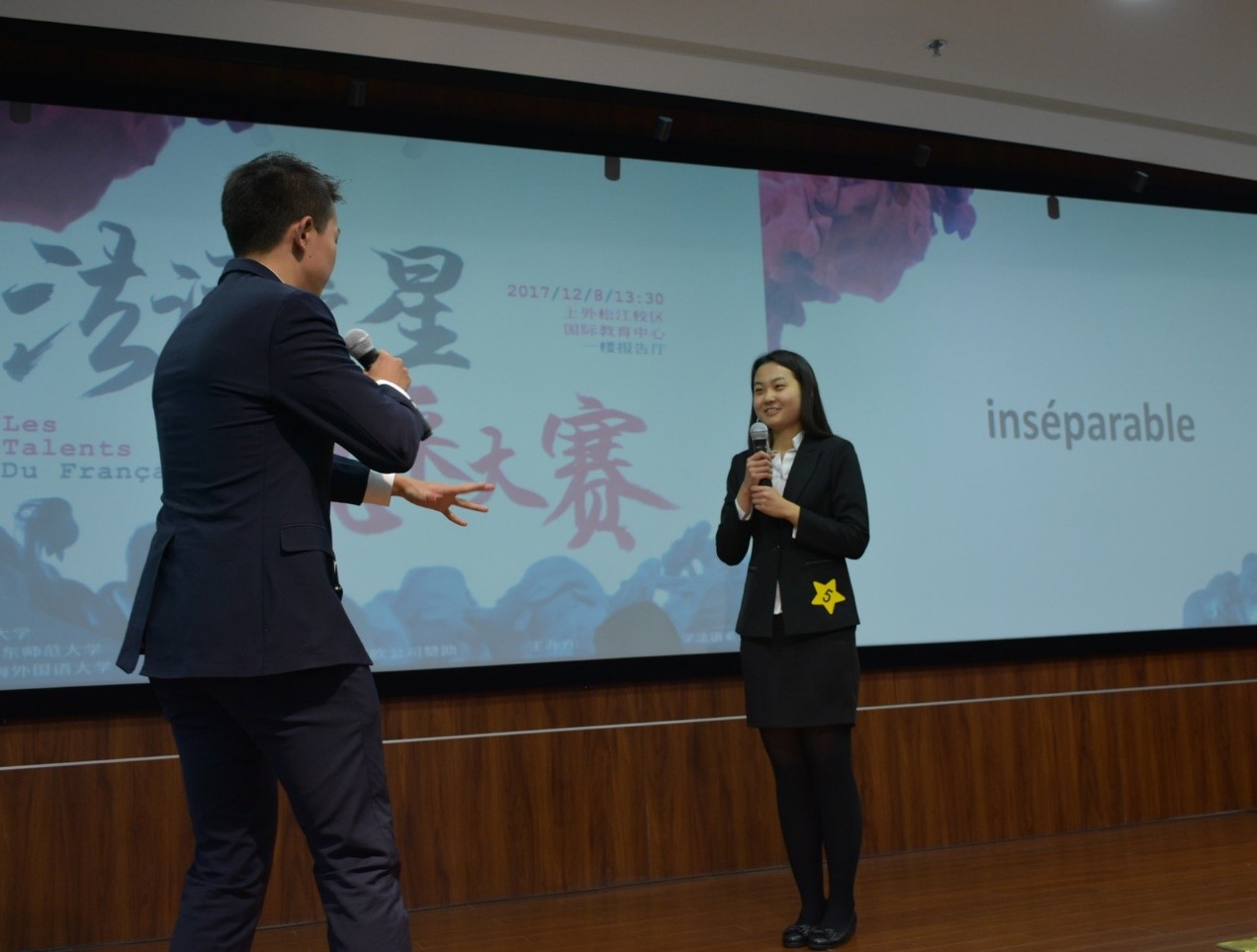 “法语之星”风采大赛是由上海外国语大学主办的大型校际法语比赛,今年首次面向全国,邀请实力最强的法语教学单位参赛。本次比赛的参赛选手分别来自上海外国语大学、南京大学、武汉大学、万象城网页版,万象城(中国)、华东师范大学、上海对外经贸大学和北京外国语大学共7所高校,除各有一名带队老师做评委外,加拿大驻上海总领事馆副领事兼商务专员高瑞莲女士和法国驻上海总领事馆文化教育合作处教育领事夏睿思博士也受邀担任大赛评委。