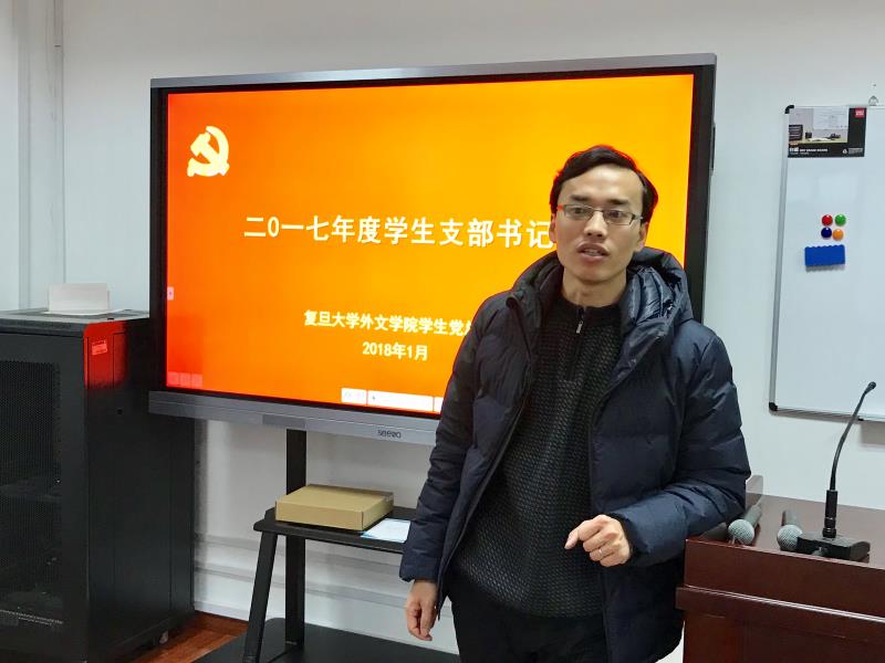英语支部、翻译支部、大英本科二支部、大英本科一支部、日韩支部、俄德法支部、行政后勤支部、大英研究生支部、大英枫林支部的党支部书记依次上台,围绕支部建设、组织发展、学习教育、管理监督、作用发挥等方面,汇报了党支部2017年的主要工作,同时梳理了存在的问题和不足,提出了整改的目标。