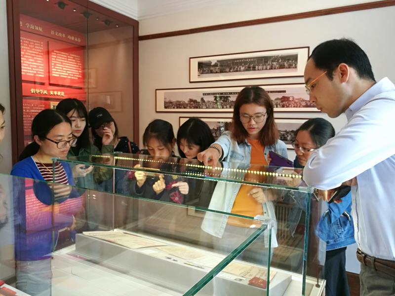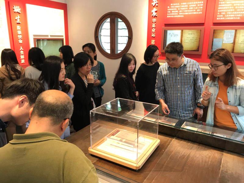 为深入学习贯彻党的十九大精神,弘扬革命传统,传承复旦精神。4月28日上午,在陈望道旧居展示馆试运营期间,外文学院党委组织党委委员和行政后勤党支部、学生党总支的部分师生党员骨干,在党委书记罗英华的带领下集体前往参观学习。