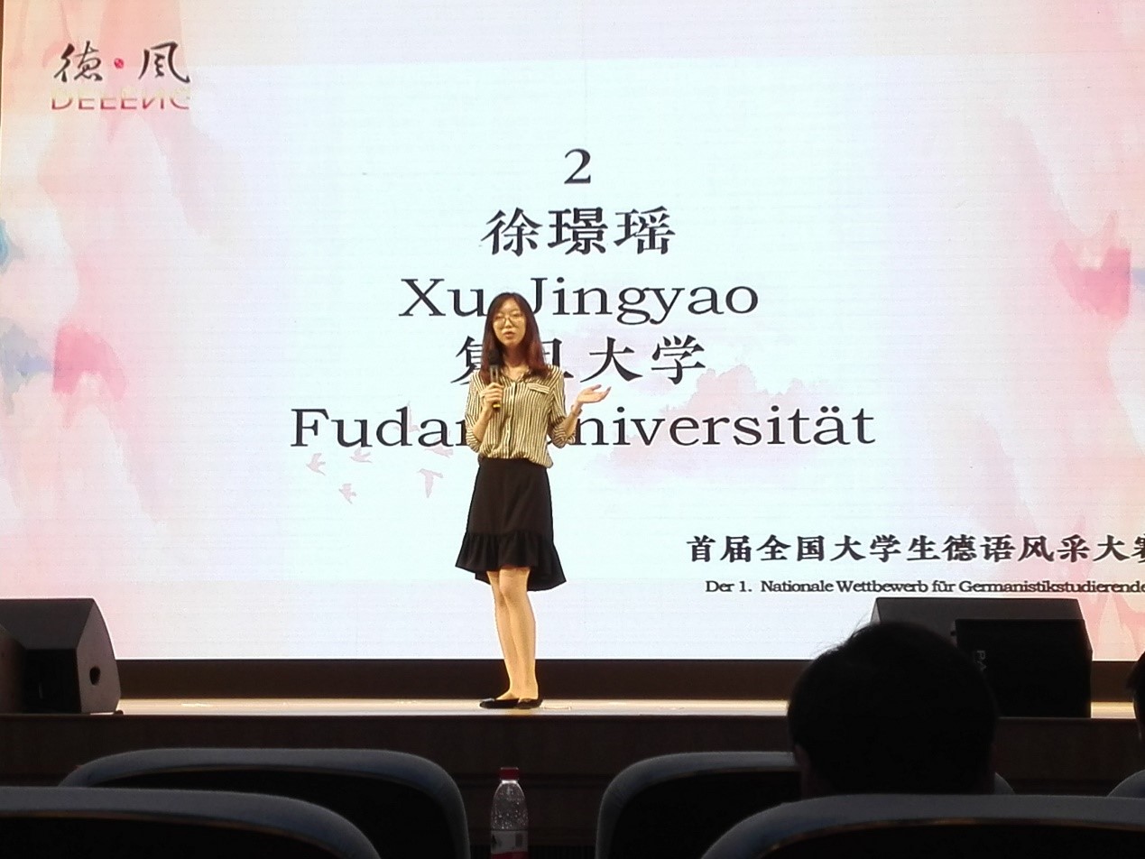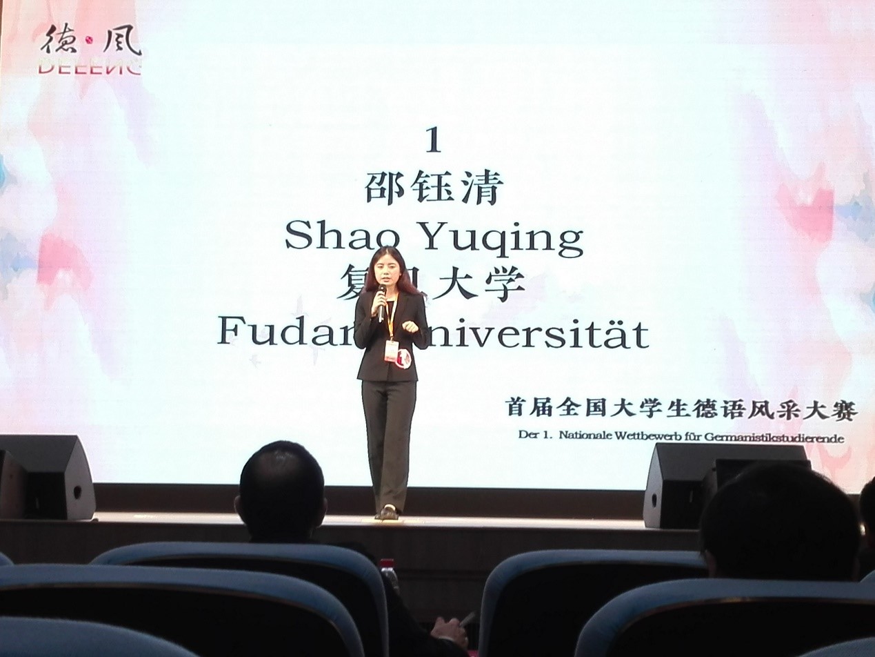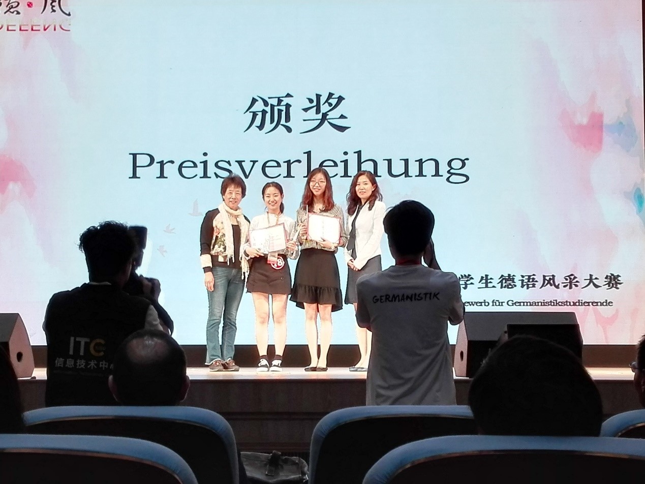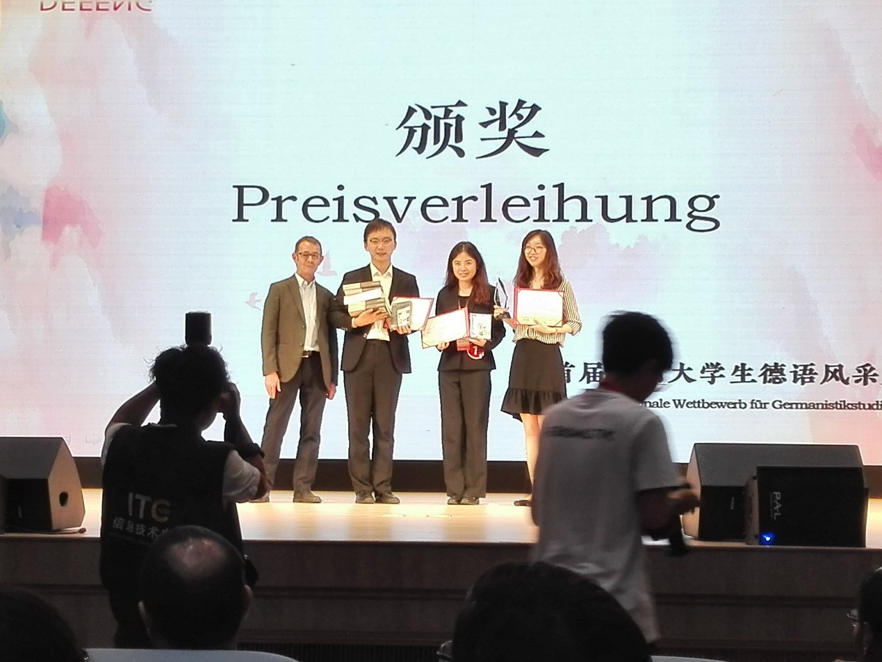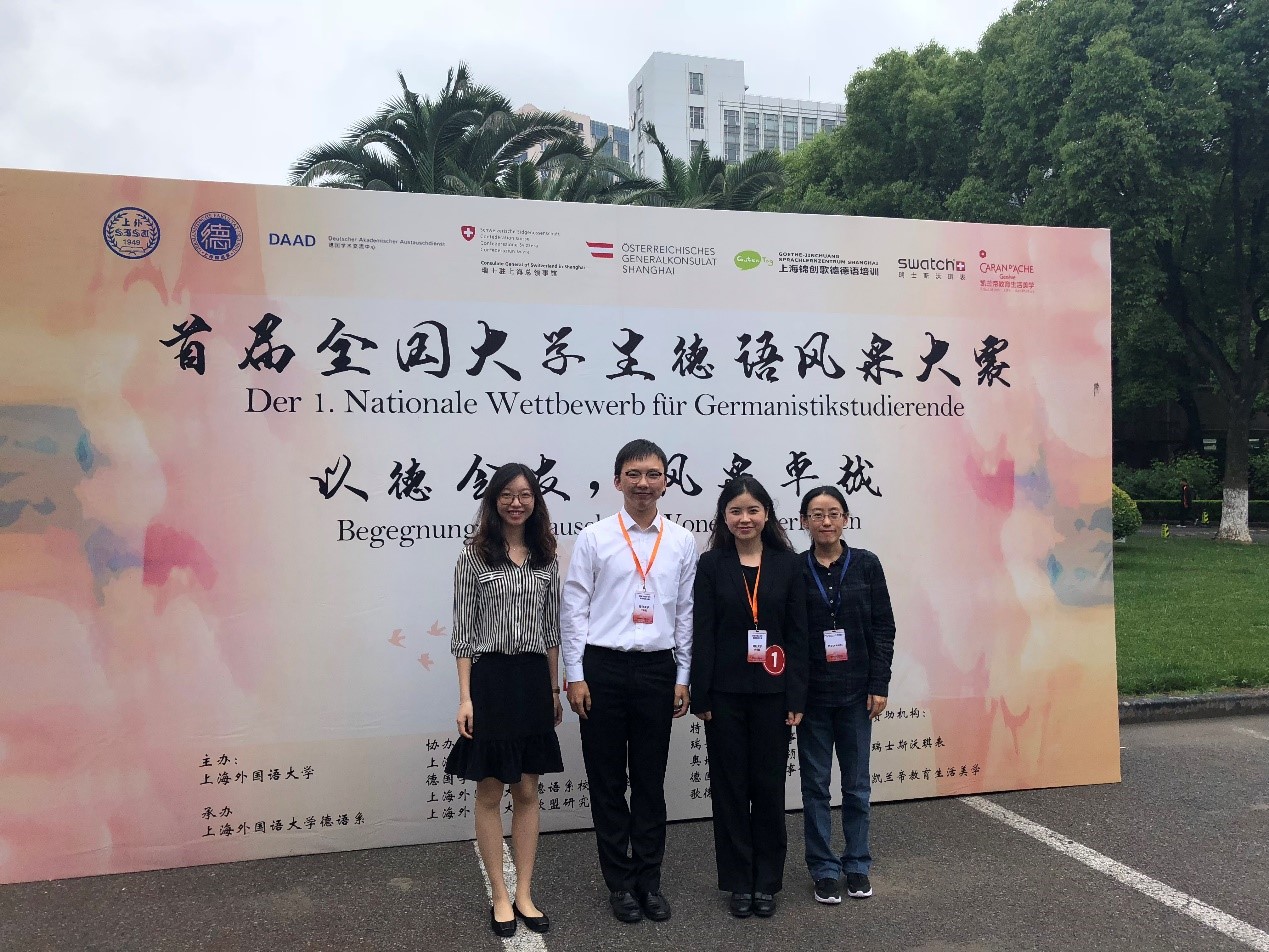 2018年5月20日,首届全国大学生德语风采大赛在上海外国语大学举办。德文系徐璟瑶、邵钰清、张政三位同学代表万象城网页版,万象城(中国)参加比赛,德文系秦文汶老师带队指导。比赛设有命题演讲、即兴演讲、知识竞赛等环节,万象城网页版,万象城(中国)代表队与来自全国七所高校的二十多位选手同台竞技,展开激烈角逐。三位同学展现了深厚的专业素养和出色的综合能力,在比赛各环节均获得高分,受到在场师生一致好评。最终万象城网页版,万象城(中国)代表队夺得大赛团体一等奖,徐璟瑶同学还荣获命题演讲最佳选手。