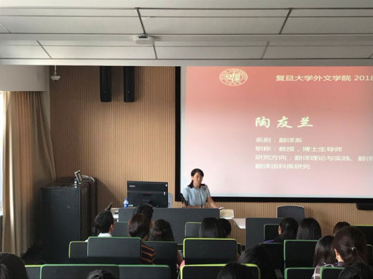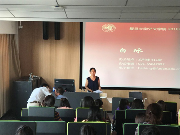 2018年9月4日下午,外文学院在六教6412教室举行2018级研究生新生见面会。外文学院院长曲卫国、党委副书记赵昕,导师代表褚孝泉教授、陶友兰教授、段枫副教授、赵世锋副教授,研究生教务员和新生辅导员出席,2018级全体硕士、博士新生参加,见面会由研工组长王亚鹏老师主持。