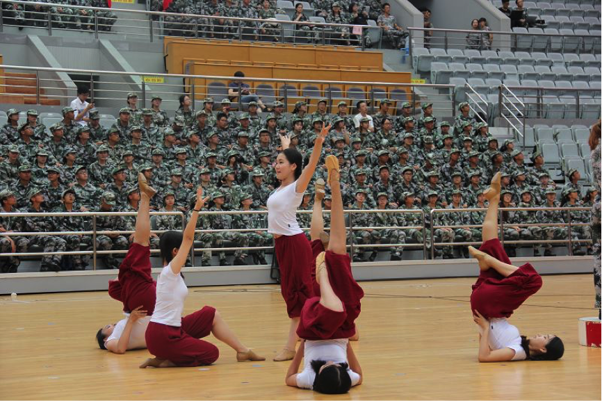 文艺汇演中,虽然只是经过短短几个晚上的排练,六连人的表演《军训天空分外蓝》充分地展示了外院学子的才华横溢,微电影《轻装上阵》里的每一帧画面,都是烈日下曾经的汗水淋漓;军体拳虎虎生风的每一招,挥出的都是同学们的士气与青春。