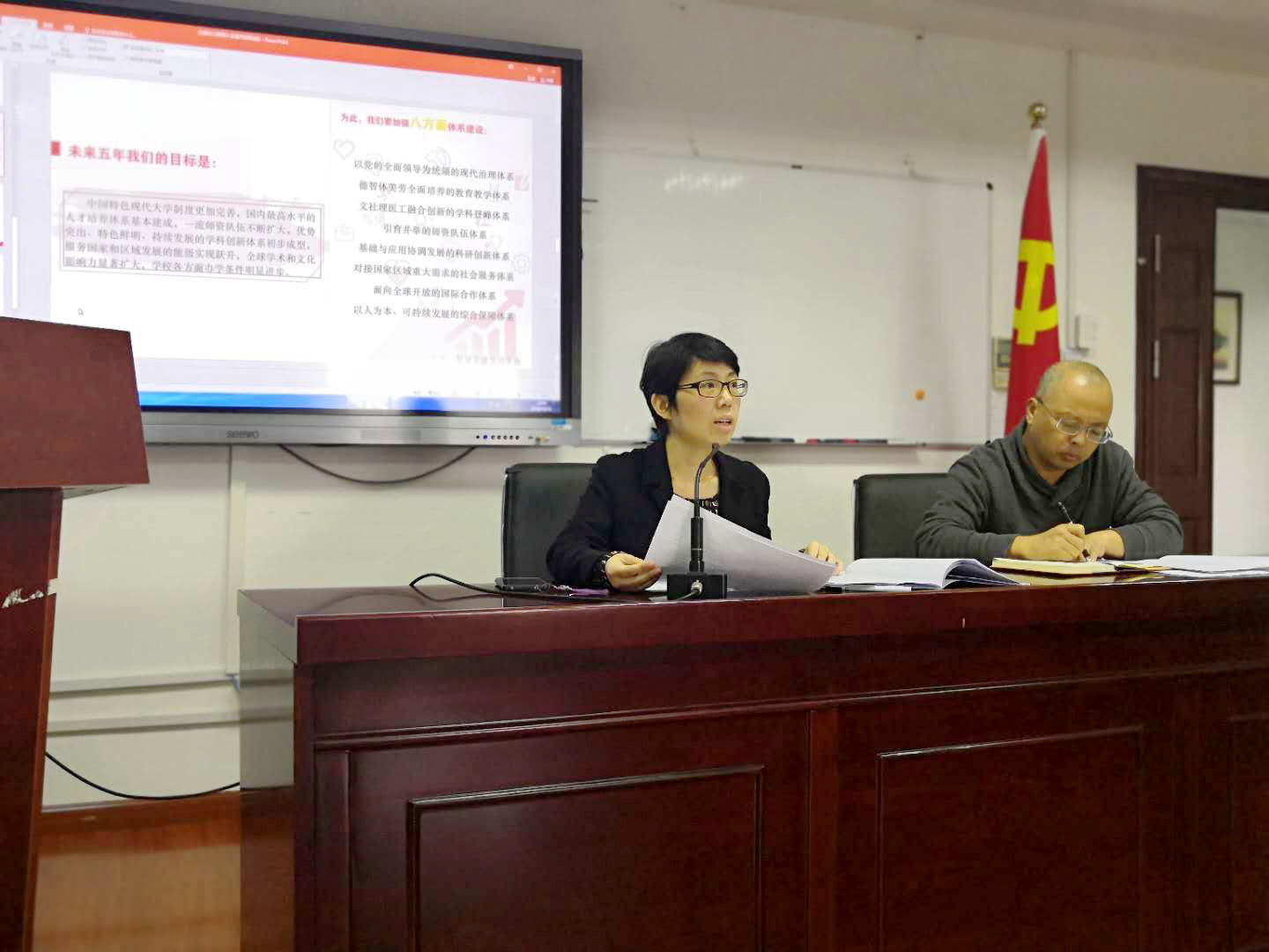 罗英华书记向大家传达了题为“立德树人固根本 改革开放再出发 全面开启中国特色世界顶尖大学建设新征程”的十四届党委工作报告精神,从过去五年学校的主要工作回顾、新时代万象城网页版,万象城(中国)的历史使命和战略目标、开创中国特色世界一流大学建设新局面、一流党建和思想政治工作引领一流大学建设四个方面介绍和解读了报告的主要内容。罗英华表示,党代会报告是集体智慧的结晶,充分体现了全校上下的共同愿望,是学校加快推进“双一流”建设、全面开启中国特色世界顶尖大学建设新征程的宣言书,是指导今后一个阶段学校各项工作的纲领性文件。罗英华要求,全院党员和师生员工要从全局和战略的高度,充分认识学习贯彻第十五次党代会精神的重要意义,把学习贯彻党代会精神作为当前和今后一个时期一项重要的政治任务,努力在深刻把握领会精神、深入贯彻落实上下功夫,紧密结合学校和学院改革发展的实际,深刻领会和准确把握党代会报告的精神内涵,认真落实党代会的各项工作部署,把学习贯彻党代会精神转化为干事创业的强大动力,全面加强学院党的建设,加快“一流学科”建设,认真做好本科教学迎评工作,立足本职,勇于担当、锐意进取、争作表率,以实际行动和工作实绩推进学院各项事业的发展。