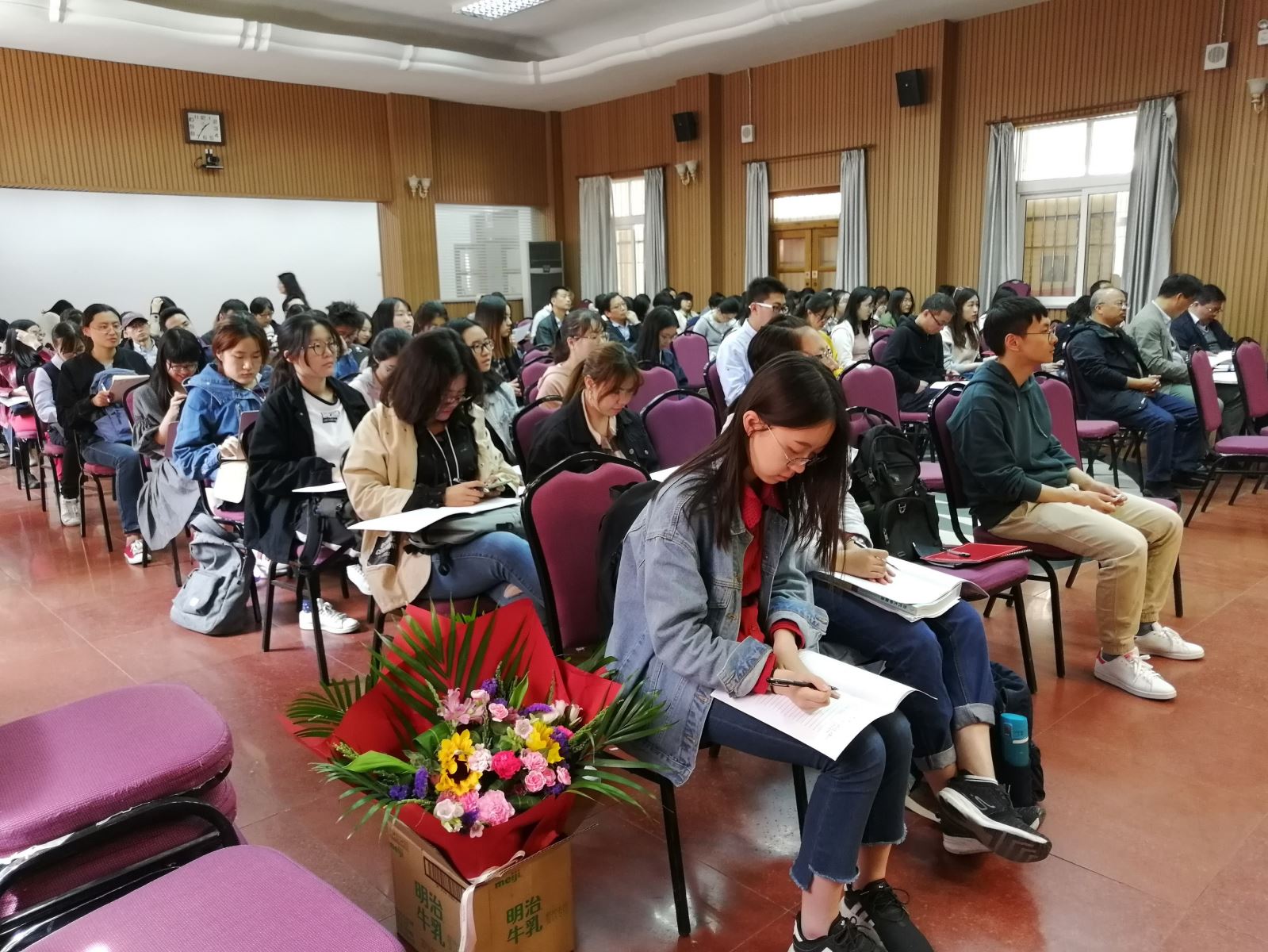 5月7日下午,外文学院分党委于工会礼堂举行第三期入党积极分子培训班暨第二期党支部书记(骨干)培训班专题讲座暨第二期优秀校友讲坛。外文学院74届优秀校友朱幸福和夫人杨岩松受邀出席,学院分党委委员、师生党支部书记、教职工党员和学生入党积极分子参加讲座。