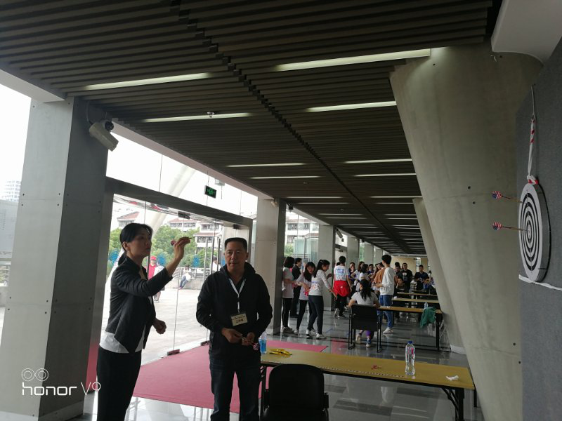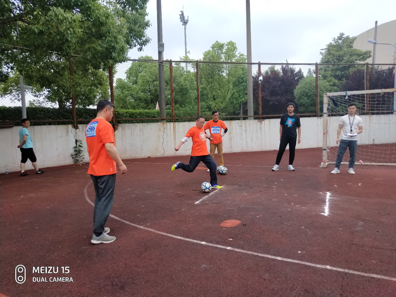 此次运动会队员之整齐,步调之一致也开创了外院的历史先河。参赛队员不仅有张绪华、白冰、邹波、殷婷婷、郭一诚、王亚鹏这些赛场宿将,更有茅盾、赵世锋、王绍梅、程寅几位牛刀初试便显身手不凡的新手。邹波老师还是多能选手,此次参加了飞镖及足球射门两个项目的比赛,均获得了辉煌的战绩,其中足球射门以六进四的结果成为此项比赛的佼佼者。参赛队员们比赛中互相提醒、互相切磋技艺、互相鼓励,不仅圆满完成了比赛任务,更加深了友谊,也为外院这一大家庭贡献了一份浓情。