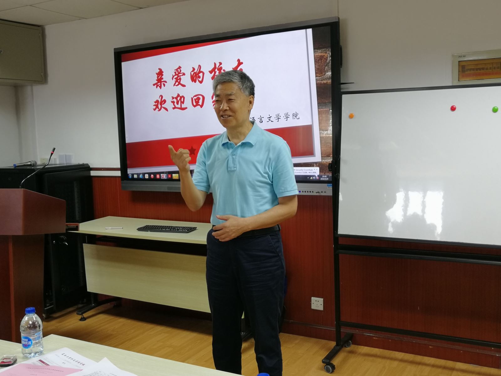 外文学院副院长、博士生导师高永伟教授全面介绍了学院各系部概况,着重介绍了多语种中心所开设的课程以及学院举办首届夏令营报名的盛况,体现了学院的学术成果和影响力。他表示,学院未来将整合多个语种,进一步提升科研能力,加强本科生人才培养质量,为下一轮学科评估做准备。