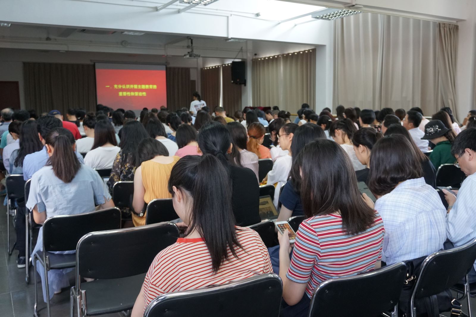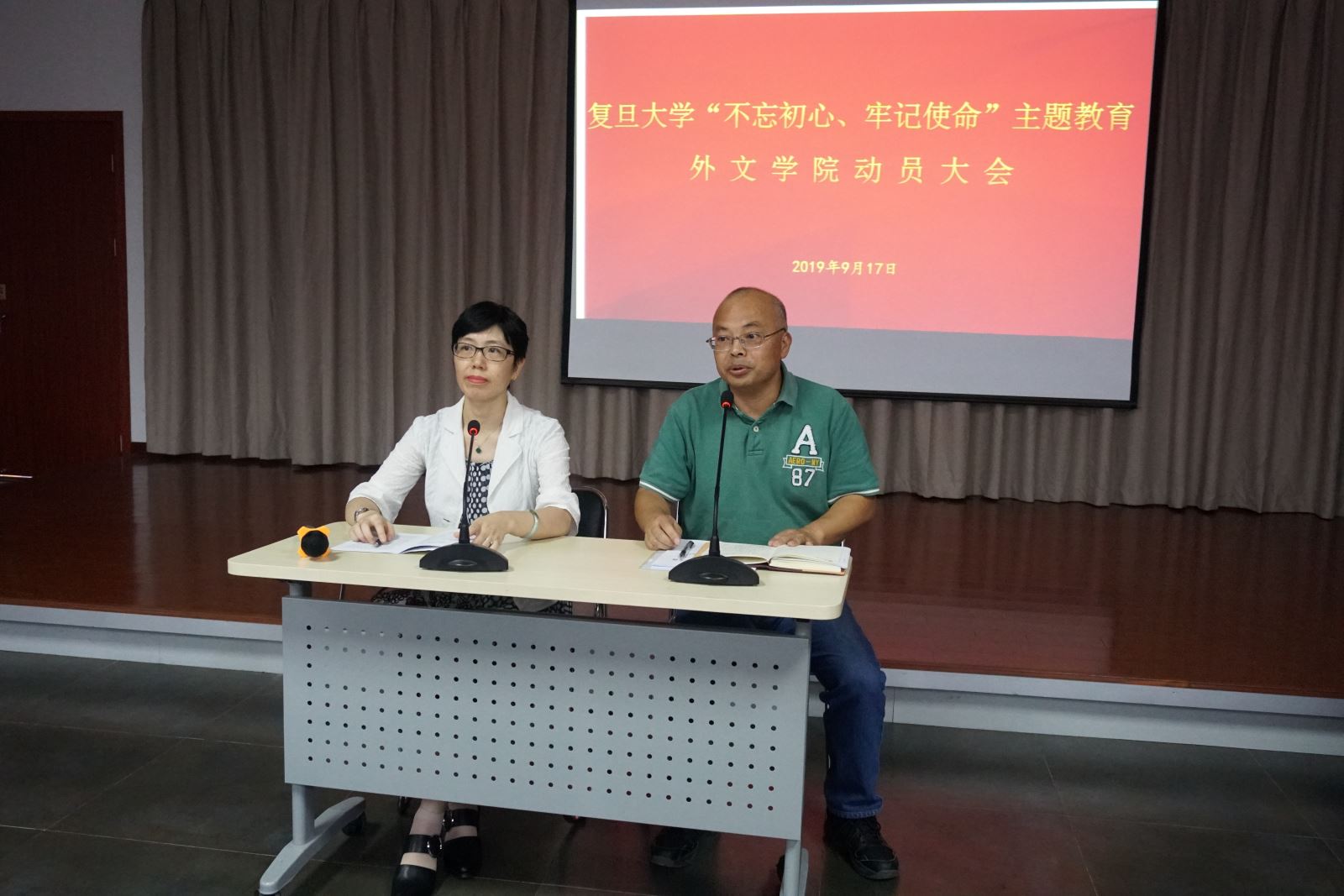 9月17日下午,外文学院党委在工会204会议室召开“不忘初心、牢记使命”主题教育动员部署会,学院党政班子成员、党委委员、教职工党员、学生党员、离退休党员代表出席会议,学校第五巡回指导组的同志列席了会议,学院党委副书记曾建彬主持会议,党委书记罗英华做动员报告。
