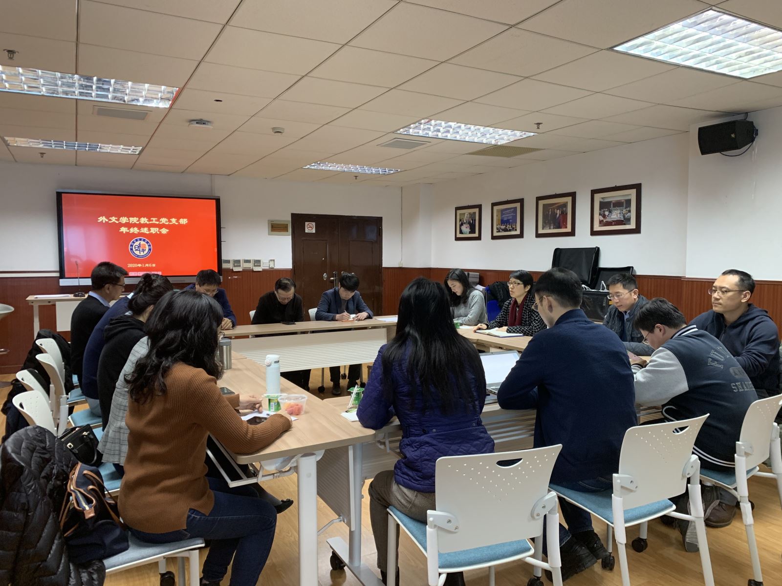 2020年1月6日,外文学院分党委在文科楼424会议室举行2019年度教职工党支部书记年终述职会。学院9个教职工党支部分别围绕支部建设、组织发展、学习教育、监督管理和作用发挥等方面向分党委述职,在总结2019年工作的基础上,剖析了支部建设存在的问题,并提出了整改方向和举措。2019年,各教职工支部根据学校党委、学院分党委的工作部署,深入开展“不忘初心、牢记使命”主题教育,并在主题教育期间开展“三全育人我当先”、“服务师生我创先”教育实践活动,党支部凝聚力和党员先锋模范作用不断增强,基层党建“生命线”进一步激活。