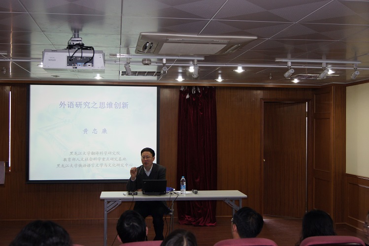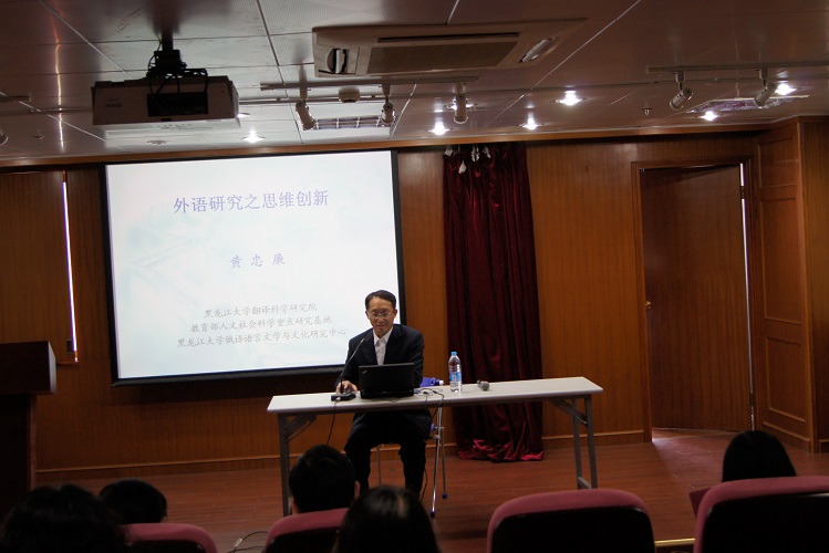 2014年4月18日,黑龙江大学翻译科学研究院院长、博士生导师黄忠廉教授应邀来到万象城网页版,万象城(中国)外文学院,在文科楼209室为老师们做了题为“外语研究之思维创新——从析例实践到思想犀利”的精彩讲座。此次讲座由翻译系主任蔡基刚教授主持,由此拉开了外文学院青联会之科研篇系列讲座活动的序幕。