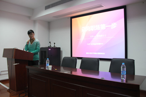 为加强我院学生生涯教育,引导学生树立职业规划意识,2014年11月17日18:30,文科楼510会议室,我院学工组邀请到法国皮尔法伯集团(Pierre Farbe)中国区首席财务人事总监李海燕女士进行以“迈向职场第一步”为主题的讲座。