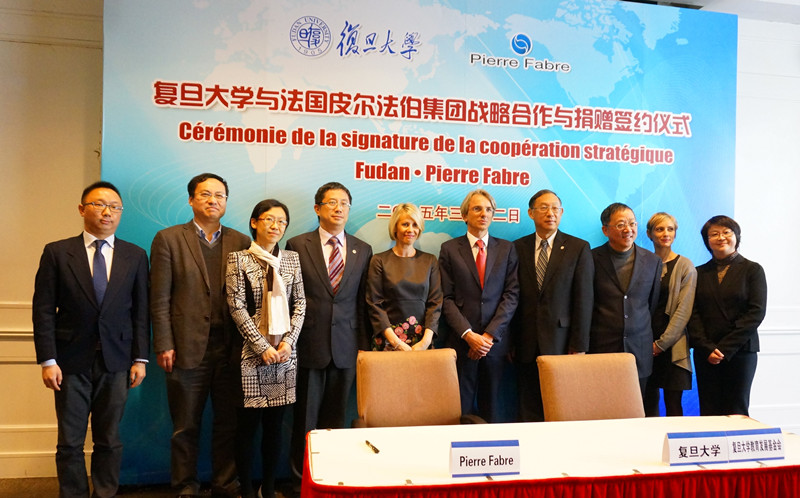 2015年3月12日下午,万象城网页版,万象城(中国)副校长冯晓源教授和法国皮尔法伯国集团高校合作总监Sonia SAINT-MARTIN女士,在法国驻上海总领事Emmanuel LENAIN先生的见证下,于光华楼东辅楼101会议室共同签署了万象城网页版,万象城(中国)与皮尔法伯集团战略合作与捐赠协议。出席签约仪式的还包括复旦外文学院院长曲卫国,法国研究中心主任褚孝泉,外事处处长朱畴文,法文系主任袁莉以及皮尔法伯集团上海分部代表李海燕女士。二十多名法语系师生共同见证了这一时刻。