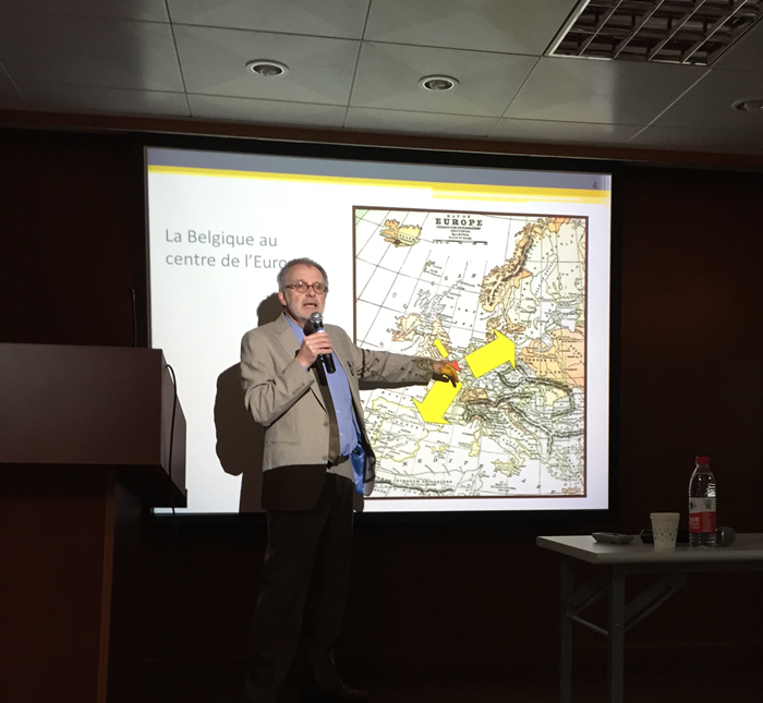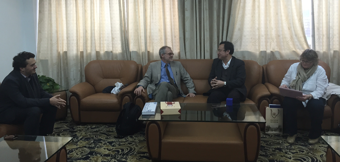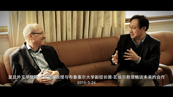 自去年底曲卫国院长与比利时瓦隆-布鲁塞尔大区(WBI)驻华代表团团长Philippe Nayer会面以来,双方进一步加强了在学术和文化领域的合作。2015年3月24日下午,比利时布鲁塞尔自由大学(ULB)副校长Jean Michel De Waele一行访问复旦,并特地移步外院拜访了曲卫国院长。双方愉快地交流了六年来ULB和复旦法文系师生的学术教学合作情况,并就未来进一步拓展和外院其他语种及翻译系的合作培养事宜交换了意见和建议。2015年4月10日,比利时列日大学外文学院院长Jean-Marc Defays、国际事务部主管Laurence Wery一行到访万象城网页版,万象城(中国)外国语学院,曲卫国院长和法文系主任袁莉老师予以了热情接待。Defays教授表示这是他第一次到访上海,希望能够推动两个学院之间各学科在学生交换、教师互访和联合研究方面的实质性合作。列日大学的两位教授还给复旦法文系师生做了一场题为《全球化背景下的语言教学》的精彩讲座。