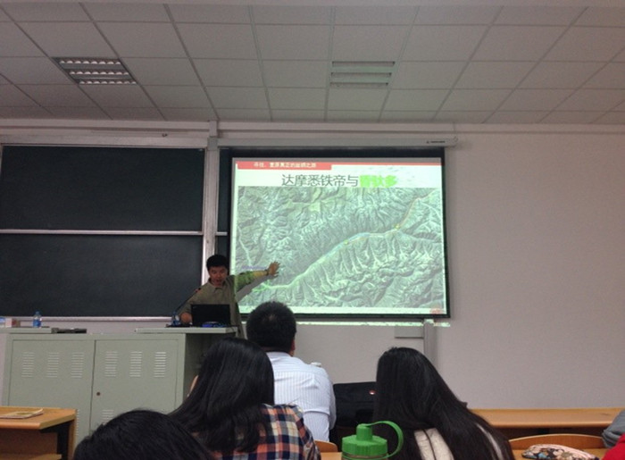侯教授向我们详细介绍了他们研究丝绸之路的目的,并根据史料记载实地考察了帕米尔。根据《汉书》记载,自玉门、阳关出西域有两道:从鄯善傍南山北,波河西行至莎车,为男道;难道西域葱岭则出大月氏,安息。自车师前王庭随北山,波河西行至疏勒,为北道;北道西域葱岭则出大宛、康居、奄蔡焉。跟着侯教授的图片展示,大家仿佛也随之一起身临其境,重走了丝绸之路。