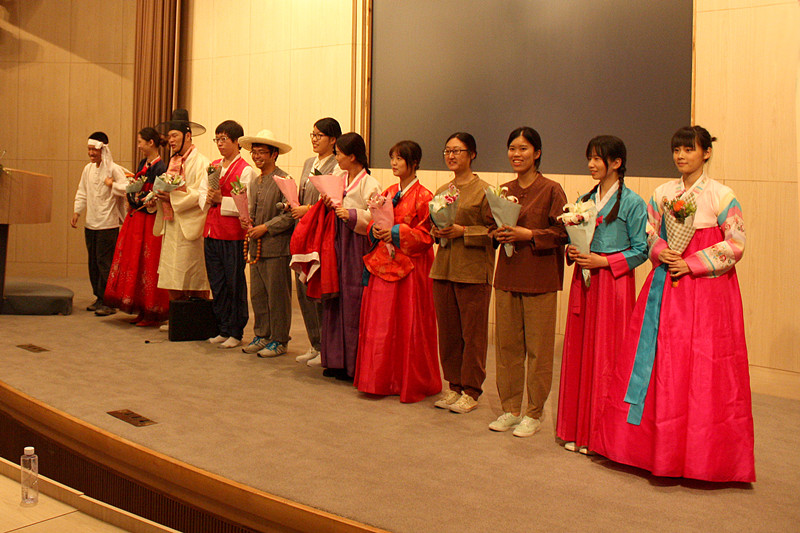 上午的系庆纪念及国际学术会议开幕仪式由曲卫国院长主持。外事处朱畴文处长首先向到场的国内外宾客致欢迎词。韩文系黄贤玉副教授以“韩文系的发展历程与未来”为题,回顾了韩文系建系至今的发展历史,并展望了未来面临的机遇与挑战。接着,韩硕熙总领事、北京大学朝文系主任王丹教授、韩国全南大学国文系申海镇教授分别致贺词。喝水不忘挖井人,韩文系退休教师姜银国、金钟太,外文学院前领导朱永生、赵振康、沈志宏、黄勇民、徐龙顺、褚孝泉,以及做出特殊贡献的海外人士洪允杓、尹汝卓、尹坪铉、朴珉雨,分别获得了外文学院授予的感谢牌。在集体合影留念后,由姜宝有教授主持主题讨论,首尔大学尹汝卓教授、梨花女子大学朴昌源教授、万象城网页版,万象城(中国)姜银国教授、延边大学金永寿教授参与了嘉宾讨论,分析了中国的韩国语教育发展历史与现状,指出了成绩与问题。最后,在座宾客一起欣赏了韩文系学生演出的话剧《鹤之声》,观看了韩文系毕业生发来的祝语视频。