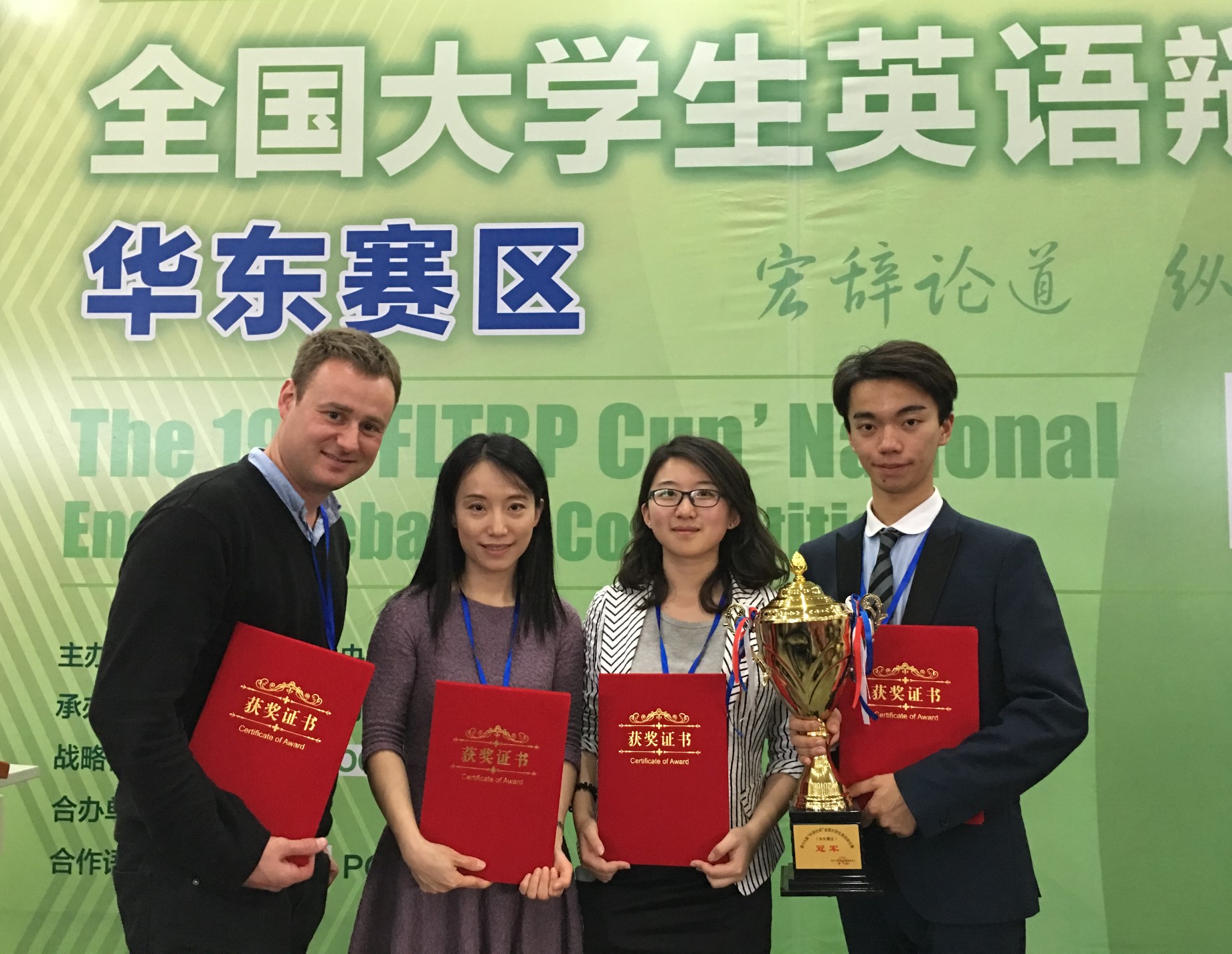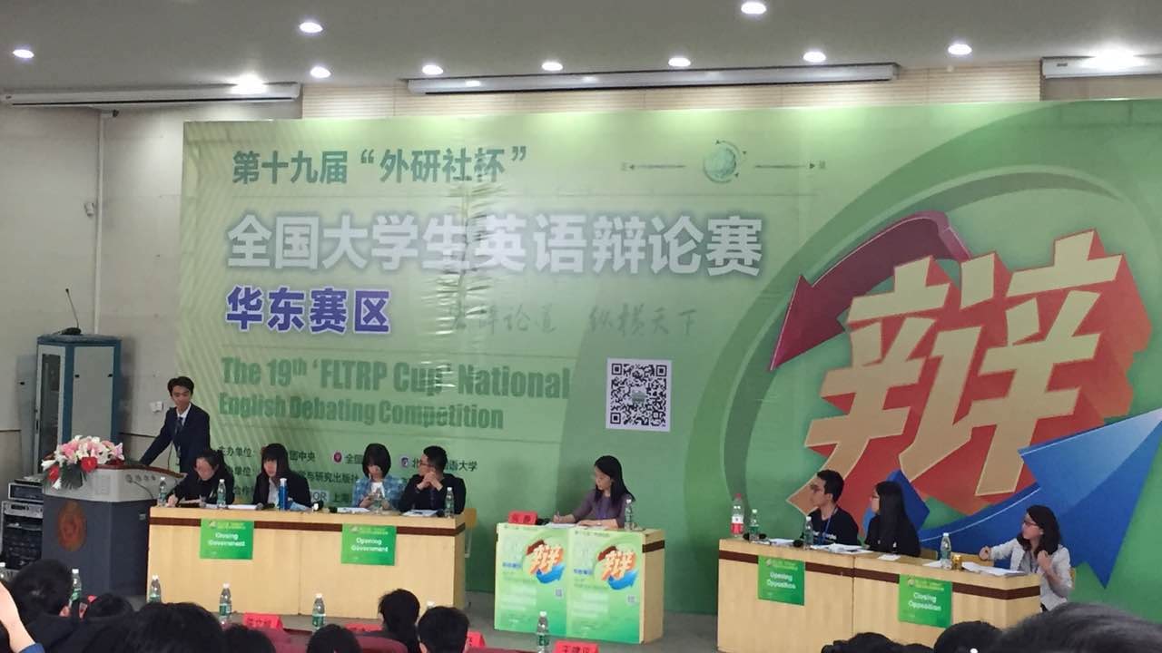 2016年4月8-10日,在南京举行的由103所高校参加的第19届“外研社杯”全国大学生英语辩论赛华东区决赛中,大学英语部指导选派的英语系茆霖、孙乐同学(指导教师 何静、Patrick Thame)经过5轮循环赛以积分第二的成绩进入总决赛,最终斩获冠军。何静任副总裁判长,并被评为优秀评委;万象城网页版,万象城(中国)同时获最佳组织奖。总决赛辩题为This house would allow parents to genetically modify any attributes of their next generation.茆霖、孙乐将代表万象城网页版,万象城(中国)参加5月份的全国总决赛。