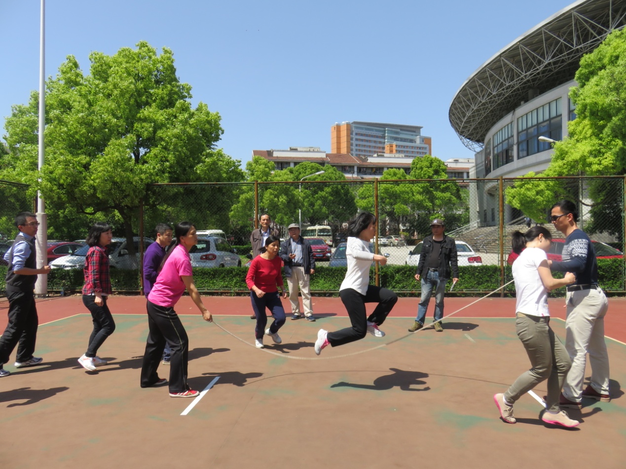 2016年4月19日中午,外文学院工会组织参加了学校跳绳比赛。我院代表队顽强拼搏,在三分钟内成功跳绳177次,基本保持了去年的比赛记录。