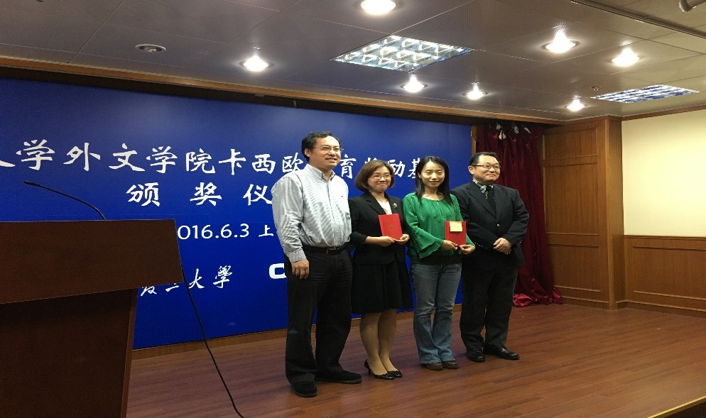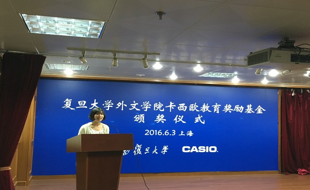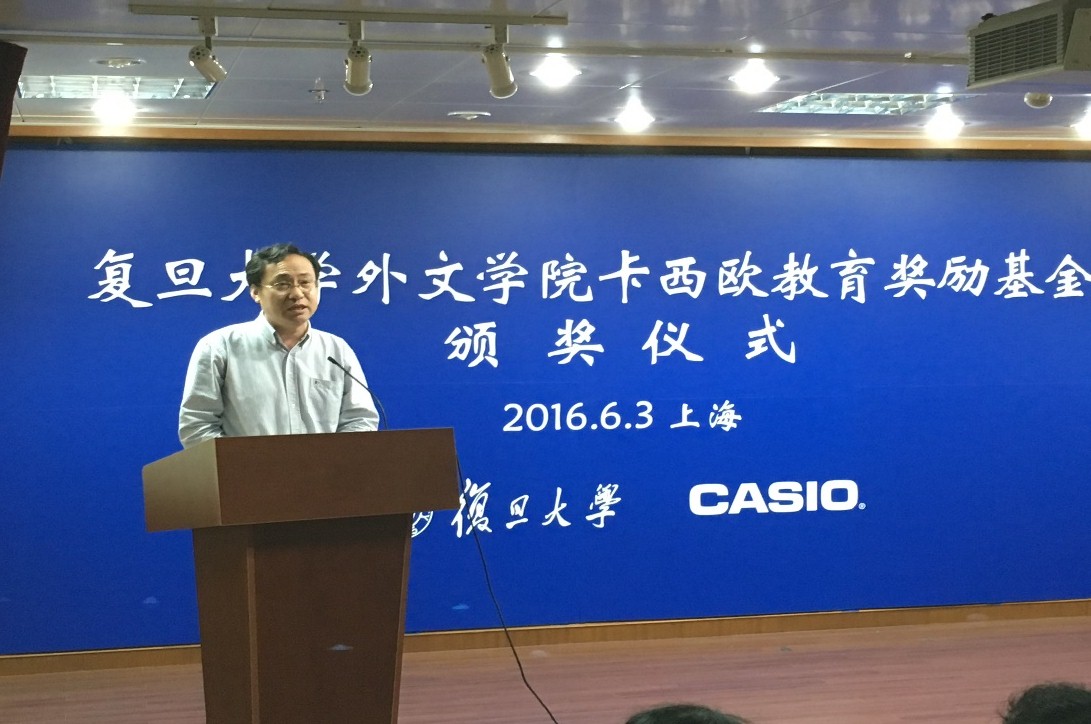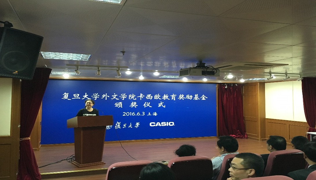 2016年6月3日下午,外文学院在文科楼209室举行2015年度卡西欧奖教学金颁奖仪式。出席仪式的有卡西欧(中国)贸易有限公司副总经理岩丸阳一、电子教育营业部副部长路银霞、营业部课长俞科凯,外文学院院长曲卫国、党委书记李倩、副院长卢丽安、党委副书记赵昕,以及外文学院获奖师生。颁奖仪式由外文学院副院长卢丽安主持。