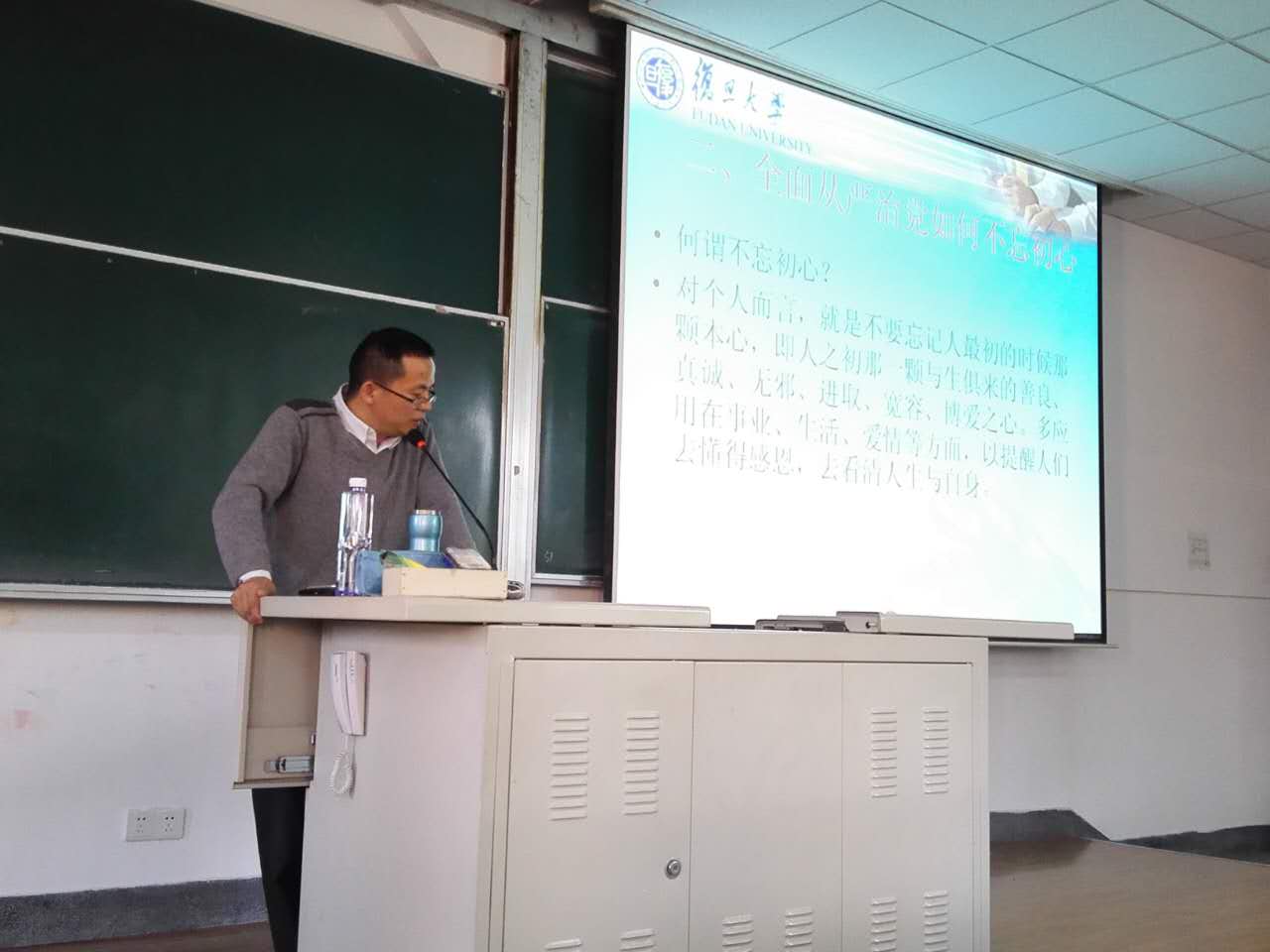 接下来,肖老师从个人及政党两个层面对“不忘初心”的具体内涵进行解读。他表示,对个人而言,就是不要忘记人最初的本心,即人之初与生俱来的善良博爱之心;对政党而言,就是不要忘记政党之根基和根本,不要忘记政党的性质、宗旨、旗帜、道路和方向。面对当前形势,肖老师结合习近平总书记建党95周年重要讲话,再次强调了八个“不忘初心,继续前进”的明确要求,并表示,“不忘初心”对政党而言,意味着永远保持奋斗精神和对人民的赤子之心,面对党内存在的问题,要及时自省和行动,时刻坚持马克思主义,牢记为共产主义、社会主义而奋斗的纲领。