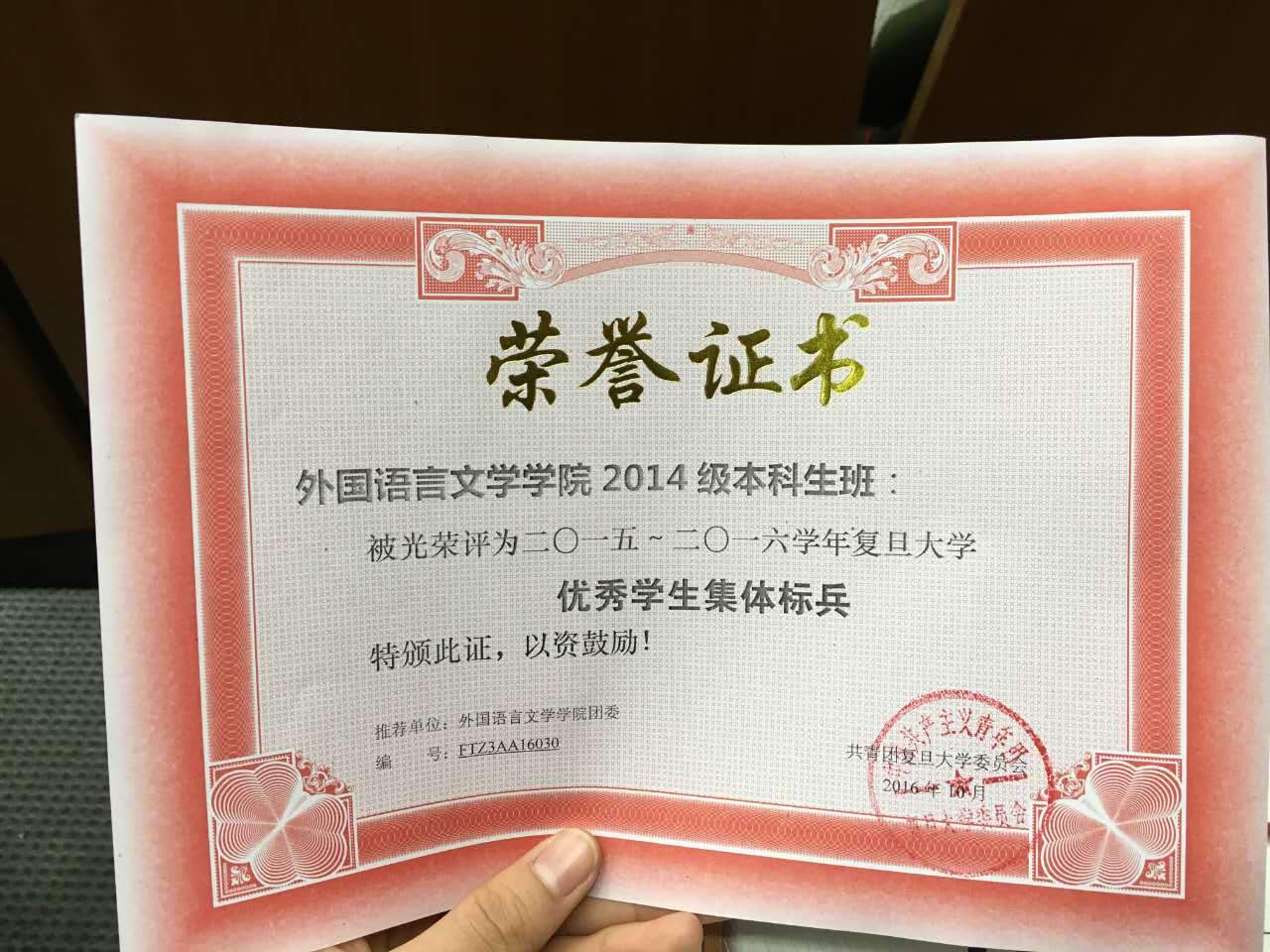 茆霖等同学负责上海市犹太难民纪念馆英语讲解志愿工作,展现了外文人对历史的关切。在上海论坛、2016年“Y20”二十国集团青年会议及全球孔子大会中,班级内多位同学担任会议翻译和随团志愿者,为对外交流做出了自己的贡献。贾怡锐等参与的民俗类实践和川渝地区同学们组织的“情牵川渝”实践活动,获评学校A级项目。在海内外各类支教活动中,同样可以看到班级同学活跃的身影。国内,小语种班的多位同学利用周末时间为农民工子女辅导课业;海外,英翻班的数位同学于暑假赴斯里兰卡进行支教。