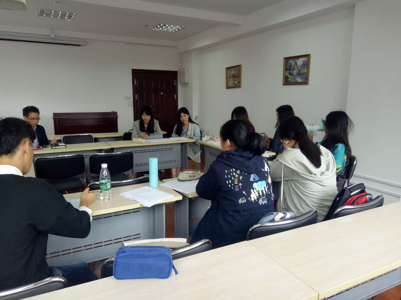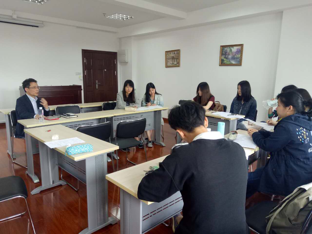 5月16日,全体学员按交流国家与地区分组,在文科楼举行分组座谈,各系系主任和交流归来的学生代表组成讲师团,从生活细节、学习体会、风俗文化和安全问题四方面进行详细讲解,列举注意事项,提出应对措施,并为学员答疑解惑。分组座谈结束后,学员们完成了行前调研问卷,并提交了交流期间的学习计划。