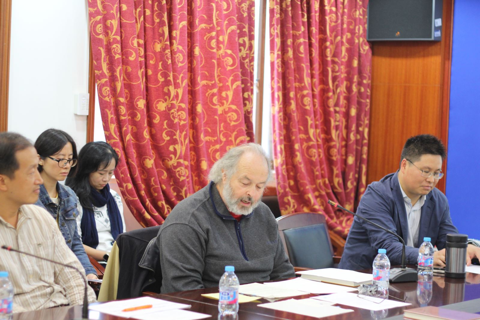 随后,陆谷孙教授生前挚友Thomas Creamer先生发表了题为“Lu Gusun: the Poet Lexicographer”的演讲,回忆了与陆谷孙教授的学术交往,并诵读了陆谷孙教授生前所作诗歌。赵翠莲教授作了题为“词典编纂是智力探索之旅”的报告,强调《中华汉英大词典》中的词条与例证都是经过陆先生的仔细研习,斟酌译出,并且陆先生也极其关注具有时代意义的新词,将其编入词典。李安兴教授报告的题目是“跟陆老师学习编词典”,他提到编写英汉双语词典是一种独立研编,要求编者有很强的选词判断力和文化直觉,选取的例证要接近现实、触动心弦,如陆谷孙教授为“蒹葭”这一词目所选取的例证:“吾出蒹葭之中,入夫子之门。”道出了多少寒门学子的心声。