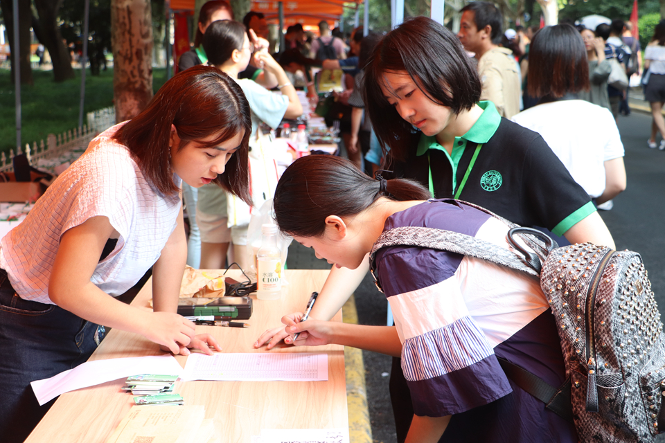 市教委领导、学校领导、书院领导和学院领导先后来到迎新摊位,看望新生和家长,慰问迎新工作人员。