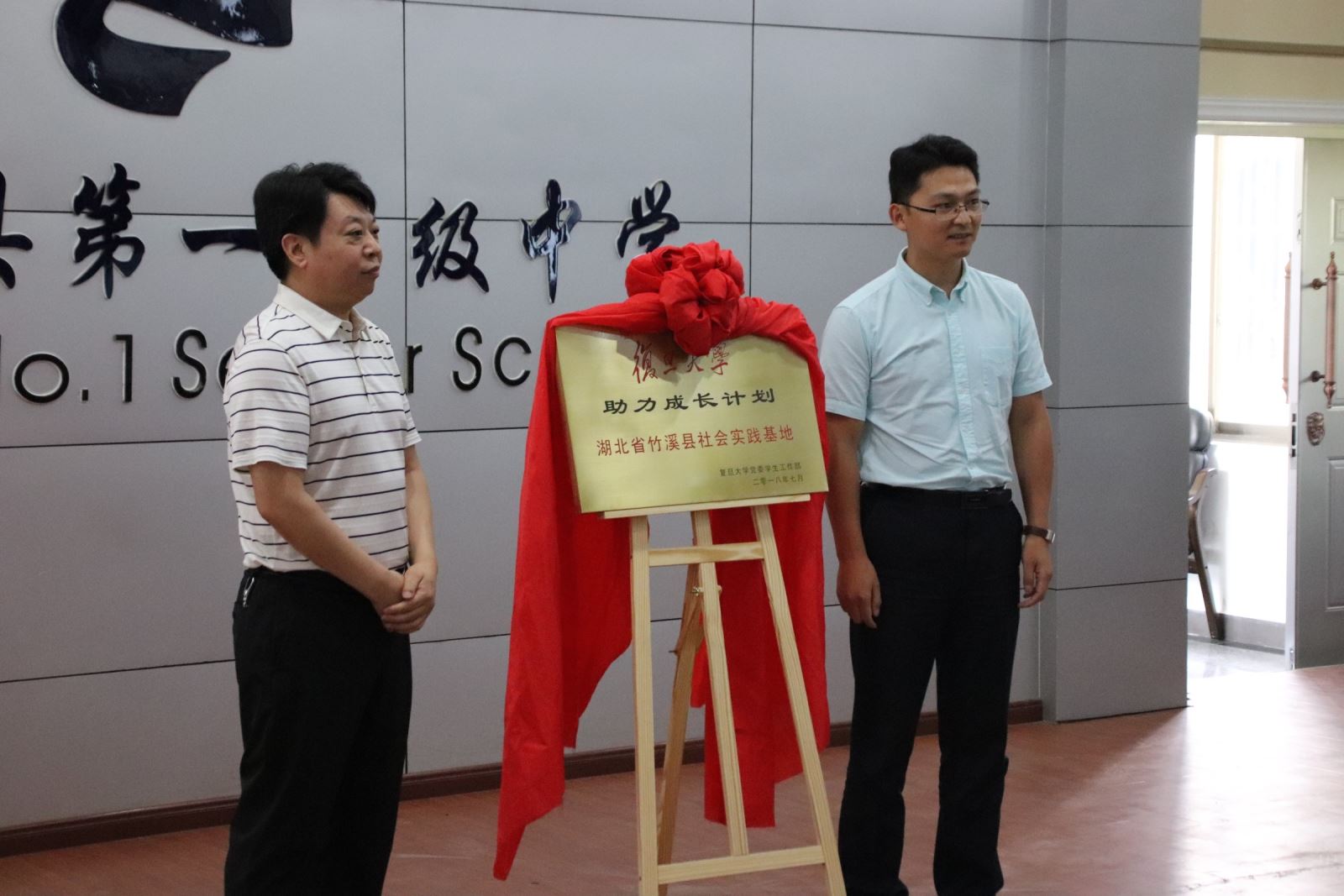 最后,竹溪县副县长姚延兴主持举行“万象城网页版,万象城(中国)助力成长计划社会实践基地”揭牌仪式,竹溪县委常委、组织部长胡贤德和万象城网页版,万象城(中国)党委学生工作部副部长于专宗共同为社会实践基地揭牌。最后,杨巧燕副县长在发言中提议与万象城网页版,万象城(中国)加强合作,打好脱贫攻坚战。于专宗副部长感谢了所有学员和志愿者,并且对助力成长社会实践基地提出了期望和要求。